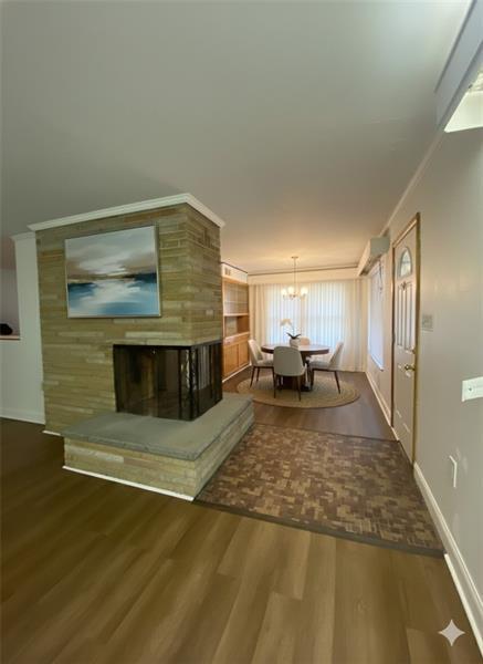 Move right into this charming three-bedroom brick ranch in the heart of Youngwood, conveniently located near shopping and everyday amenities. Relax with your morning coffee or unwind in the evening on the inviting covered front porch. Step inside to a welcoming layout where the front entry opens to the dining room featuring a built-in cabinet, and a spacious living room highlighted by a beautiful stone fireplace. The bright kitchen offers solid wood cabinetry, abundant storage, a dishwasher, and a counter that opens to the living room"”creating an open-concept feel that's perfect for entertaining. The main level features a generous primary bedroom with its own bathroom, two additional bedrooms, a full bath, hardwood floors, and newly installed flooring throughout the main living areas. The finished lower level expands your living space with an impressive 44x12-foot room with a fireplace"”ideal for a game room, media room, additional bedrooms, or flexible storage. You'll also find a large laundry room with extra storage, a convenient half bath, and access to the garage. The driveway provides additional off-street parking for another vehicle. This well-maintained home offers comfort, space, and versatility"”all in a convenient location. Add this one to your must-see list and schedule your private tour today!