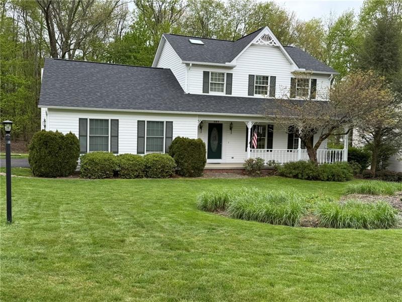 Welcome to this wonderful home in the community of Southgate. This home welcomes you with a stamped concrete sidewalk to the cozy front porch. Inside you'll find a foyer with closet and half bath. Open Floor plan from the spacious family room to kitchen, while special meals can be enjoyed in the dining room. Living room just off the dining room and the foyer allow for more space to spread out. Luxury vinyl planking throughout the entire main floor for easy living and cleaning. Plenty of natural light allow the sun to flow throughout this home. The family room offers a wood burning fireplace for chilly nights and access to the back deck through sliding door. U-shaped kitchen makes prep work a breeze. A large pantry area for extra storage. Upstairs you'll find the primary bedroom with large walk-in closet with double doors and a private en-suiite with dual vanities. 2 additional bedrooms nicely sized with good closet space and a full bath complete the upstairs. The lower level provides ample space for movie night, games area or additional place to relax. Additional space behind the finished part of this level offer plenty of storage space while keeping private the mechanicals of the home and the laundry area. An attached 2 car garage is easily accessed from the paved driveway and enters to the family room/kitchen. Going outside to a most park like setting, this generously sized lot allows areas for enjoyment or more private area in the wooded section. Updates to this home include all flooring of new luxury vinyl plank and new carpet 2024. New roof 2024. All electric home with heat pump will keep you comfortable all year long.