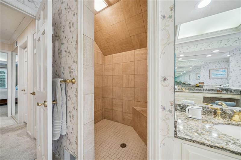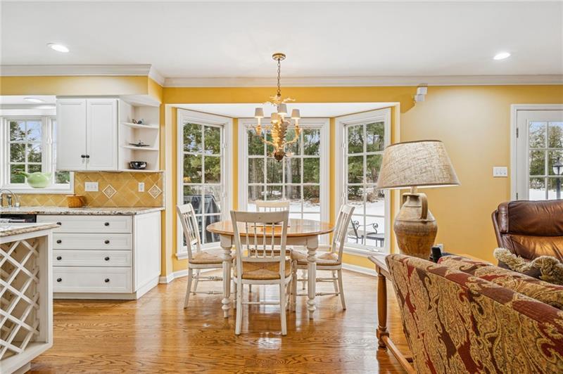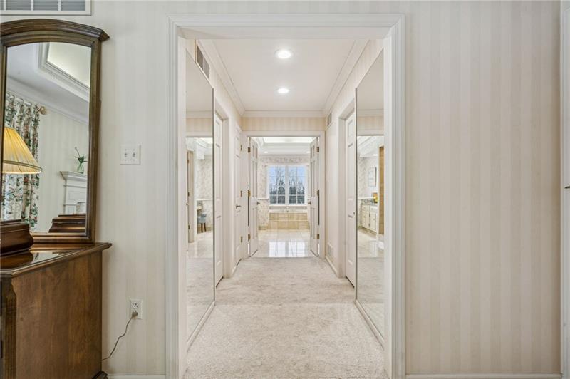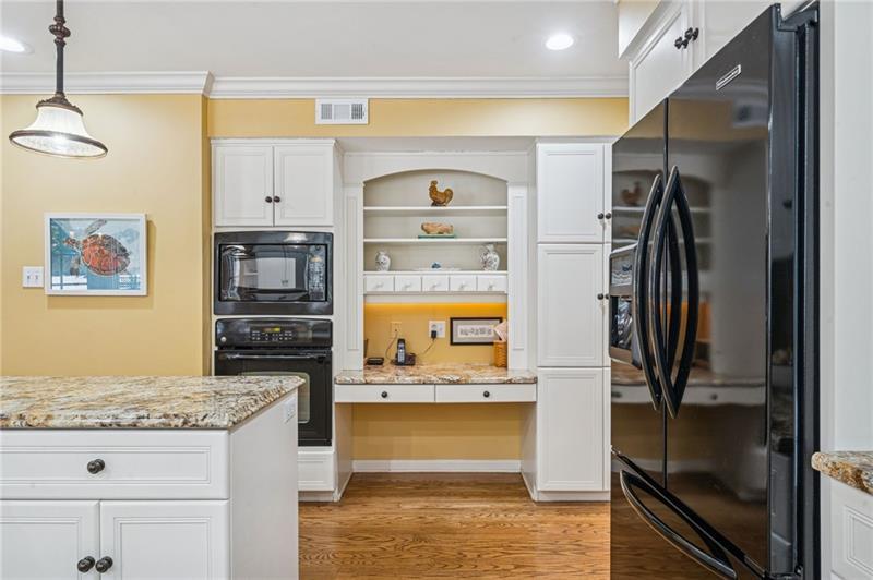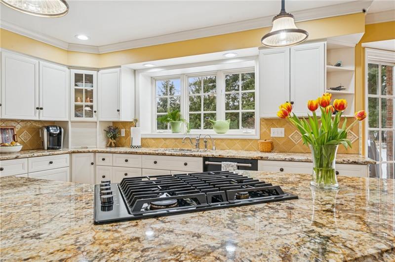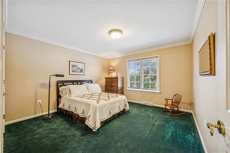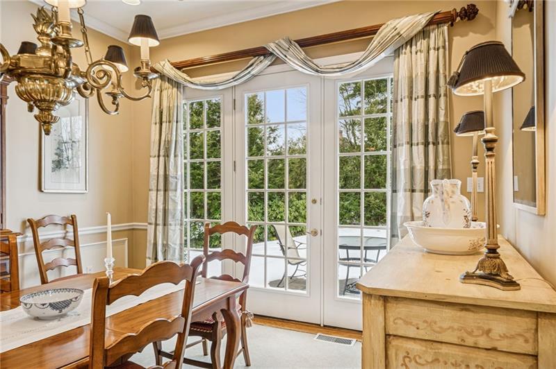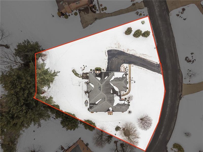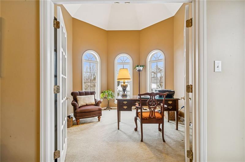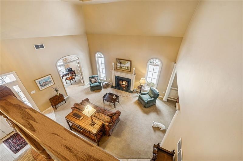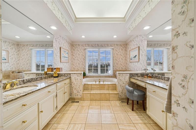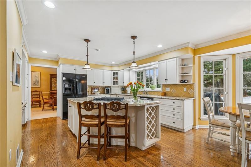 Welcome home to this stunning Pellis built all-brick 3-bedroom, 2.5-bath residence offering elegant living spaces. Step through the welcoming front door into the entryway with travertine tile floors and then on to the grand living room featuring soaring ceilings and a cozy gas marble fireplace, perfect for both relaxation and entertaining. The formal dining room impresses with tray ceilings, custom window treatments, and French doors that open to a level backyard, ideal for outdoor gatherings. A den with Palladian-style windows and a vaulted ceiling adds charm and light throughout the home. The French country kitchen boasts a gas cooktop, desk area, wood floors, and a breakfast area with large windows overlooking a stone patio, filling the room with warmth and natural light. Gather in the family room, where the gleaming hardwood floors continue and a second gas fireplace creates an inviting retreat. Upstairs, the luxurious primary suite offers an additional marble fireplace for cozy winter evenings and mornings, tray ceilings, two walk-in closets, and an oversized spa bath complete with a Jacuzzi tub, separate shower, and dual vanities. Two additional bright and airy bedrooms share a well-appointed full bath with tub and separate shower. With three fireplaces, thoughtful architectural details, and timeless finishes, this remarkable home exudes a stately yet comfortable elegance perfect for gracious living.