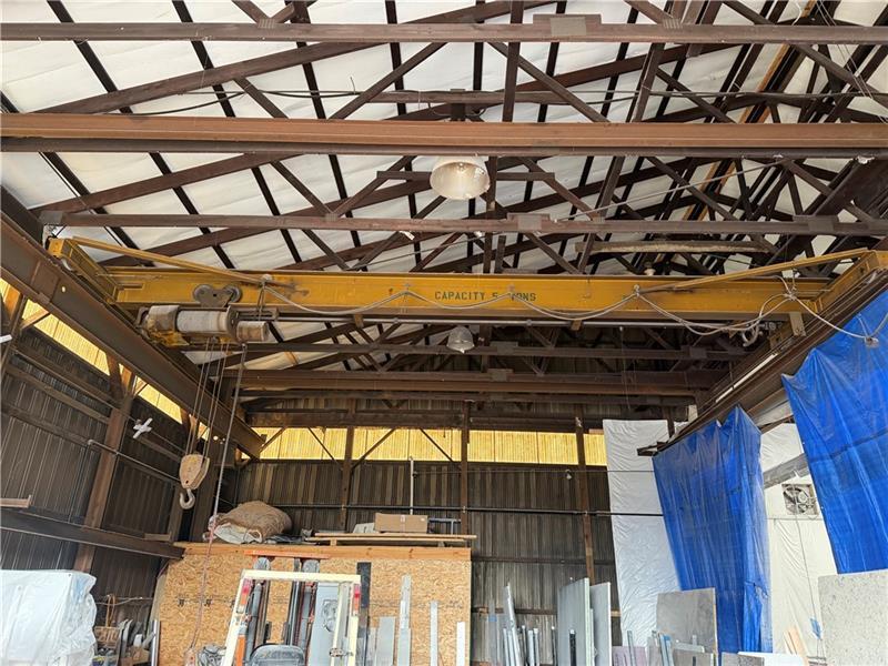 Only 10 minutes to I-79, No Zoning, and Loads of Potential at this former welding shop location. Three of four bays available for lease beginning 05/01/2026. Three phase electric / West Penn Power. Roughly 3,730 sq.ft. of warehouse/storage/office/manufacturing space. Two 5-Ton overhead cranes in high bays. Private entrance. Insulated bathroom/kitchenette area. Gravel Lot in front provides plenty of parking and/or outdoor storage space. Natural gas overhead low-intensity radiant tube heaters. Country setting, but close to Butler & Slippery Rock.
