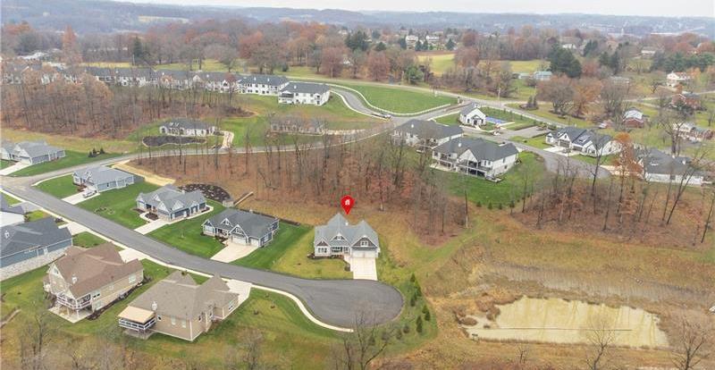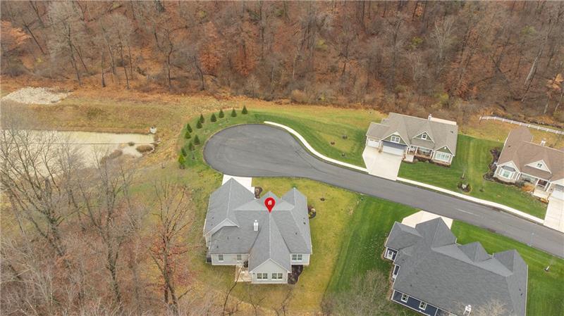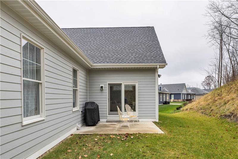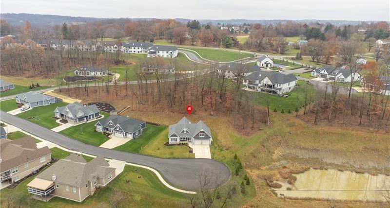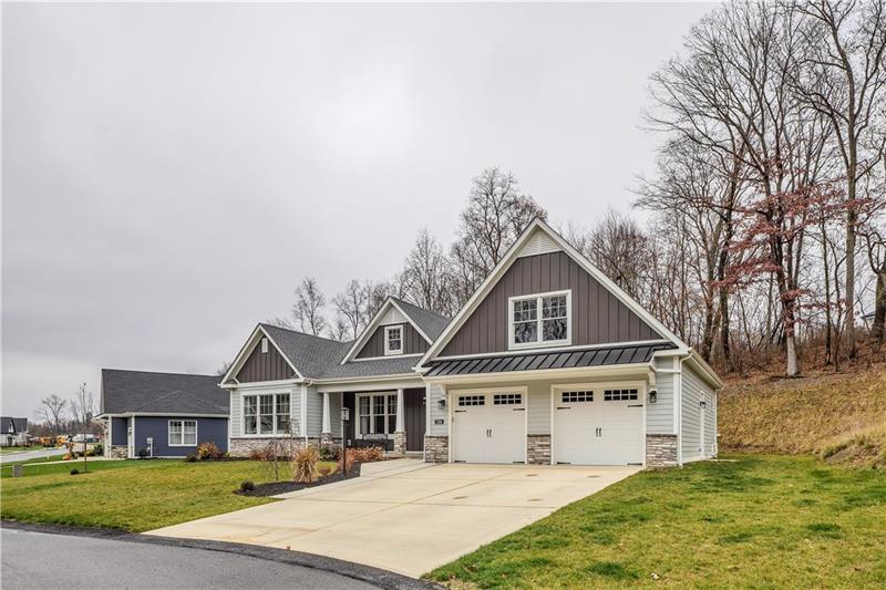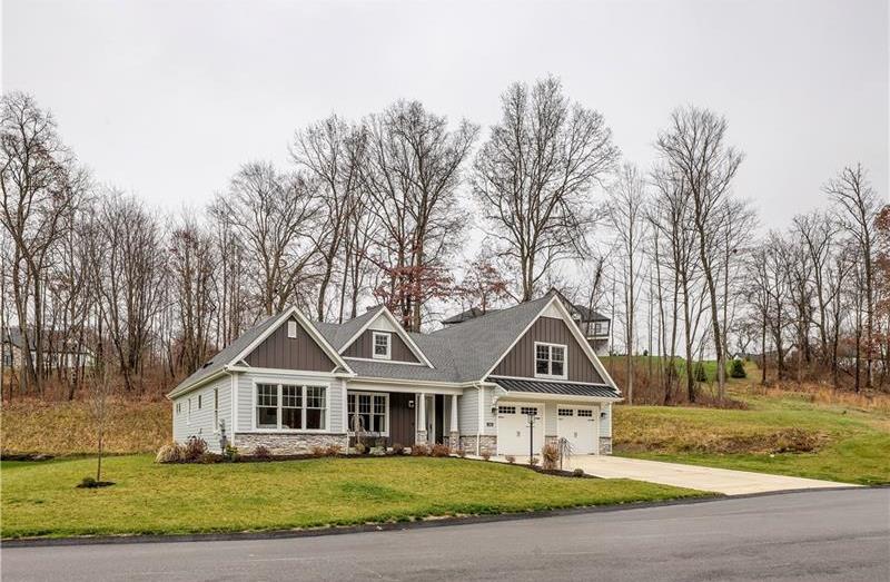 Beautiful, 2-year-old level-entry ranch located in desirable Hillstone Village on a quiet cul-de-sac. Features an open floor plan with 9 ' ceilings, 8' solid wood doors, a great room w/ vaulted ceiling & cozy gas fireplace, upgraded gourmet kitchen with soft-close drawers, Ge appliances, granite island & counters, upper & lower cabinet lighting, dining area, a bright 4-season room that can serve as a den or family room, with walk-out access to the patio and yard. The primary ensuite includes freestanding tub, large shower, his/her vanities with quartz countertops, 2 closets (one walk-in). Expansive 2413 sq ft lower level is roughed in for future living space. Additional features: Covered front porch, 1st-floor laundry, custom closet built-ins, 2-car attached garage w/storage, workshop area & prepped for 240 EV charger. Over $52K in upgrades. Enjoy entertaining in the Community clubhouse with pickleball & bocce. HOA includes common-area maintenance.