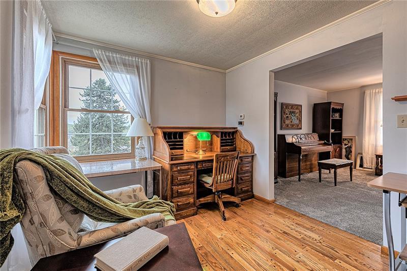Welcome to this charming 3-bedroom, 2-bath Cape Cod tucked in a quiet Irwin neighborhood! Inside, you'll find a bright, open layout with plenty of natural light. The main level features a spacious large living room with tons of natural light, a bedroom with large closet, a full bath, and an additional cozy living or den area. The open kitchen offers warm wood cabinetry, double ovens, a gas cooktop stove, and flows into a sunny dining area.  Upstairs there are two large bedrooms, a full bath, and generous closet space. The finished basement adds more living area plus a workshop and storage. Enjoy a 2-car heated garage with attic, 200-amp service, and three electric panels (garage, basement, and main).  Relax on the covered front porch or entertain on the cement side patio overlooking the fenced half-acre yard with a shed"”private and perfect for outdoor living!