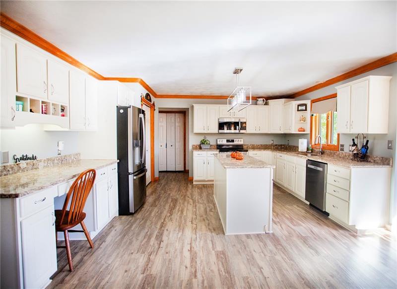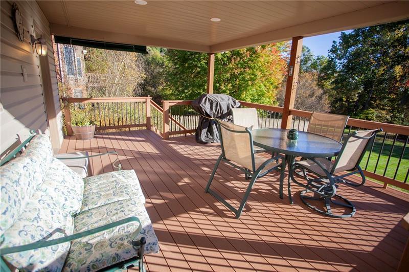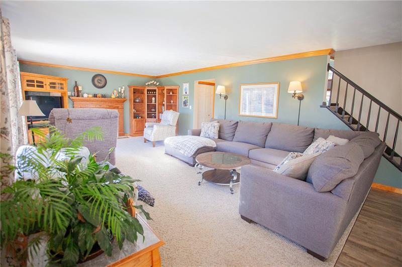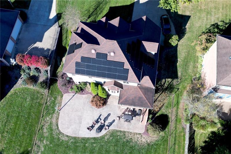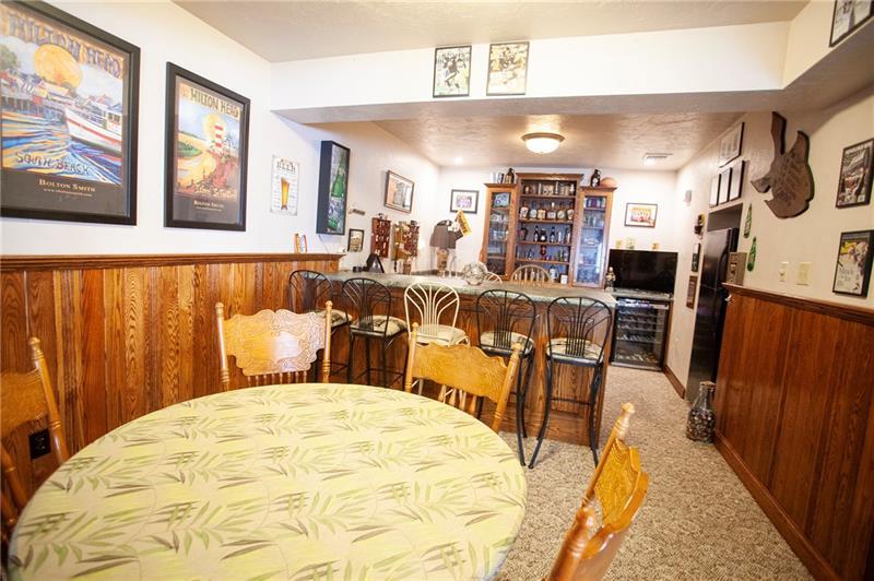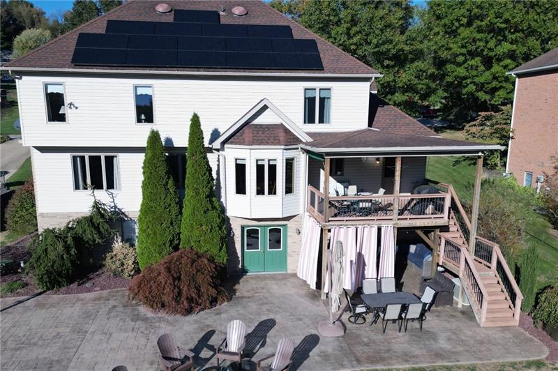 Welcome to this stunning, very well maintained 4-bedroom, 3.5 bath home situated on a spacious .63 acre lot, offering both comfort and functionality. The large kitchen is a chef's dream, featuring an abundance of cabinetry, sleek quartz countertops, and plenty of space for gathering. Just off the foyer, you'll find a convenient office area-perfect for working from home or managing daily tasks. Downstairs, enjoy a spacious family/game room complete with a full bar-ideal for entertaining family and friends. An additional room is currently used as exercise space, offering flexibility for your lifestyle needs. Step outside to relax or host on the deck or stamped patio area, surrounded by plenty of room for outdoor fun. This home also features completely transferrable solar panels providing energy efficiency and impressively low utility bills. With it's generous living areas, beautiful finishes, and energy-smart design, this home truly has it all!