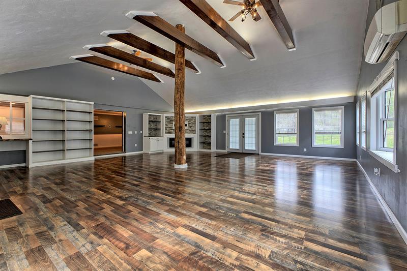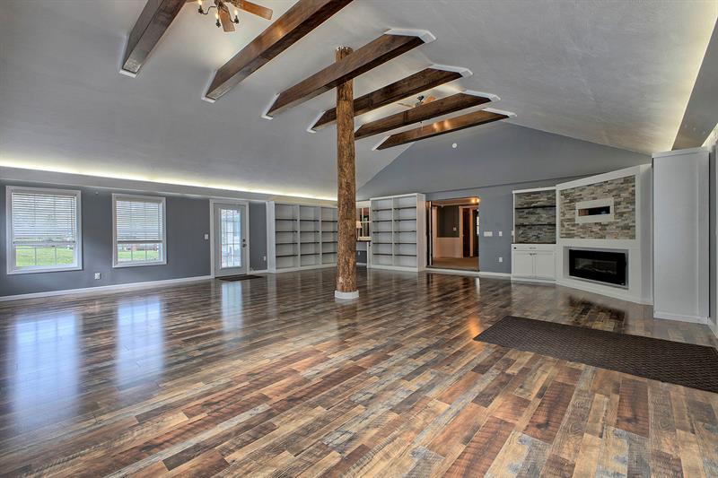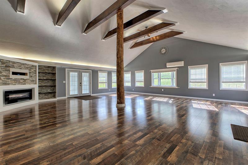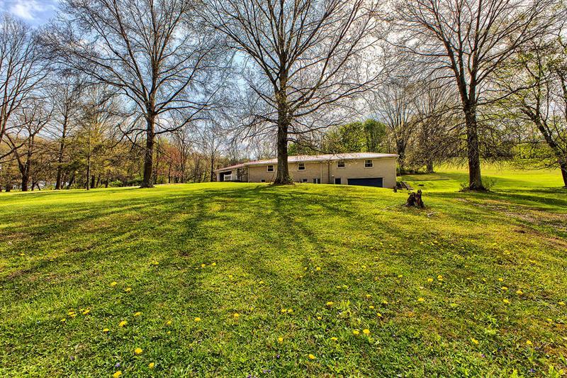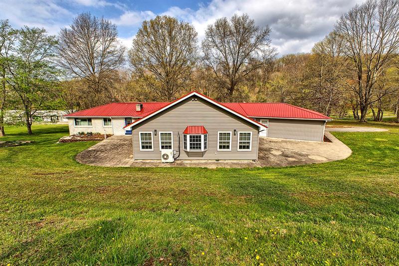 Beautiful sprawling brick ranch set on 2.78 acres. Everything on 1st floor including laundry. Amazing 30x30 great room with natural wood center pole & joists, great for parties & events. Spacious kitchen with multiple windows offers a lovely view. Adjacent to the kitchen is a spacious dining area, ideal for hosting gatherings and enjoying meals with loved ones. Huge wrap around patio has lovely stamped concrete. Garages on upper and lower levels for up to 4 cars. Includes LARGE STEEL 36x72 ft OUT BUILDING. Lower-level partial bath is plumbed but no fixtures