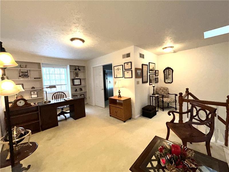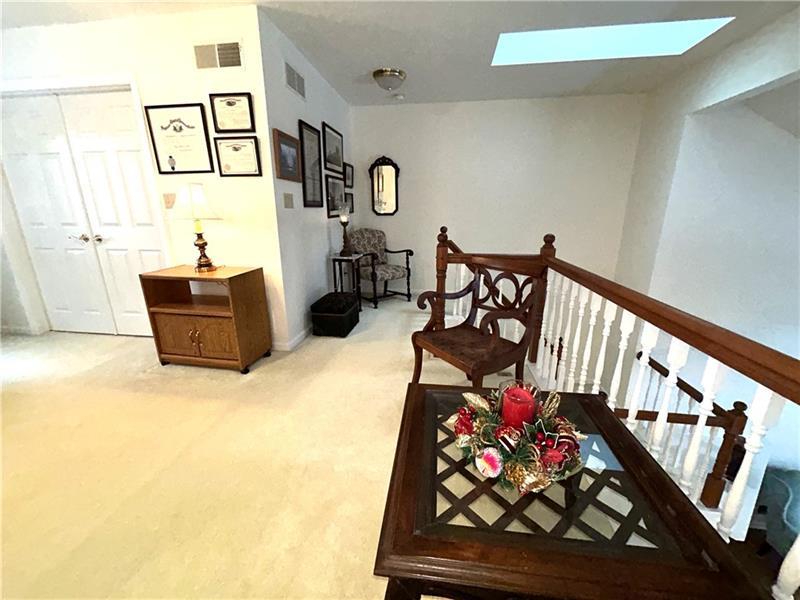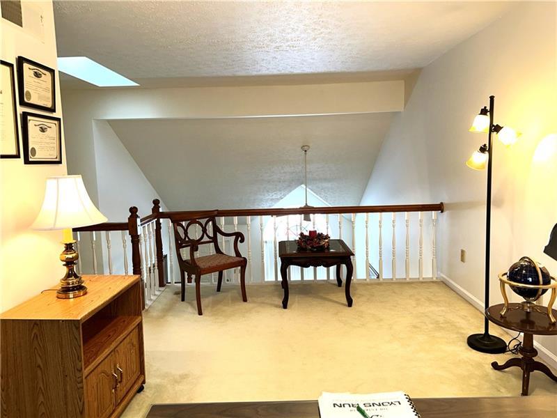 You'll love this beautiful Brick patio home located in Lyons Run Estates featuring a formal living room with a gas log fireplace, skylight, vaulted ceiling, open to formal dining room, fully equipped all white kitchen cabinets, french door to rear patio and scenic treed yard. First floor bedroom with large closet and full bath. Second floor Master bedroom with double closets, full bath, large loft area used as office. First floor laundry including washer and dryer. New Air Condioner