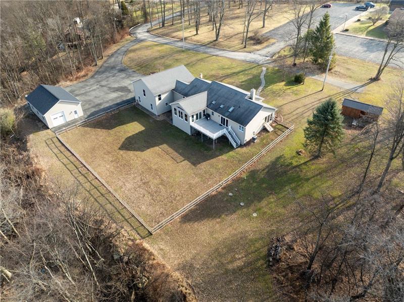 Gorgeous, stunning, and exceptionally private, this remarkable ranch is tucked away on over three acres at the end of a quiet dead-end street. Designed for both comfort and versatility, the home features a private primary suite on one side, while the heart of the home unfolds into a sprawling open-concept living area with a chef-style kitchen ideal for entertaining. Two additional bedrooms are thoughtfully positioned, along with a massive bonus space offering its own private entrance"”great for an in-law suite, apartment, hobby area, or expanded living quarters. Step outside to a spacious deck overlooking a beautifully level, fenced backyard with sweeping ridge-top views. The expansive basement includes a dedicated office and offers the potential to nearly double the home's living space. Car enthusiasts and hobbyists will appreciate the oversized integral four-car garage, along with an additional detached three-car garage and ample parking. Conveniently located within walking distance to local dining and shopping, this rare property combines privacy, space, and flexibility"”an exceptional opportunity that will not last.