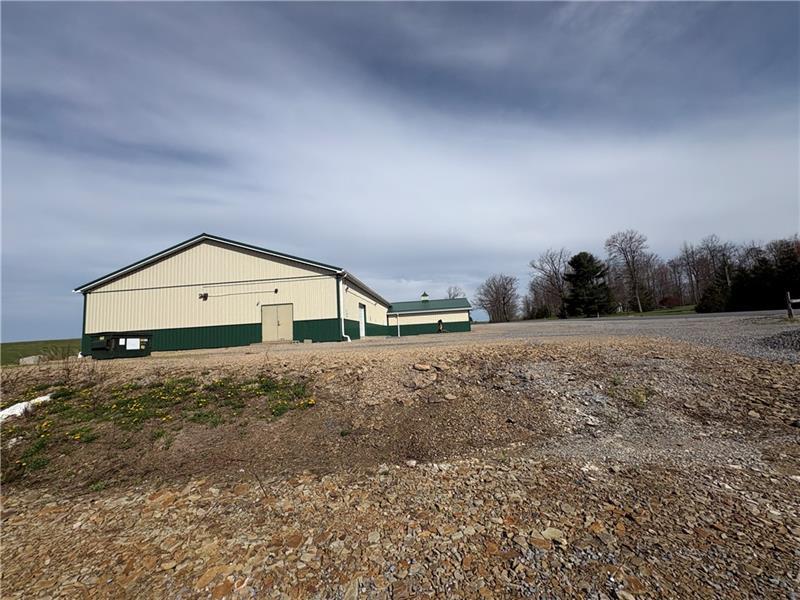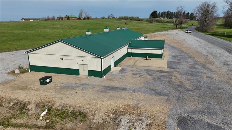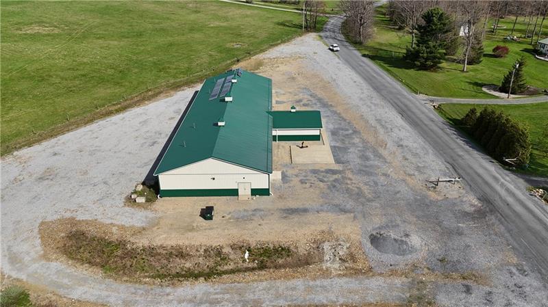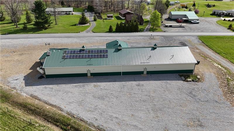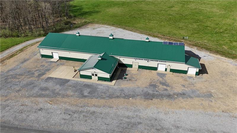 Commercial Building - Former Auction Facility, built in 2017. Abundant parking, off-grid with solar system, insulated, 2 bathrooms, water collection tanks.