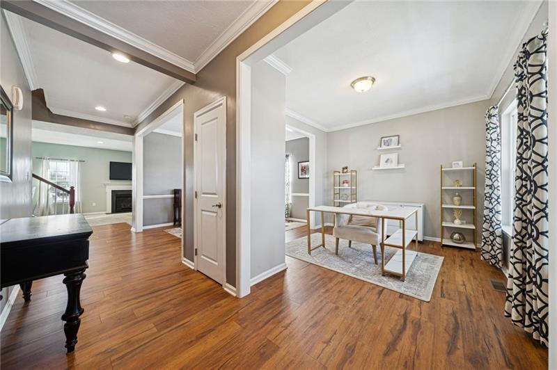 Positioned on a premier corner lot in the distinguished Grandview Estates community, this exceptional 4-bedroom residence offers a seamless blend of timeless elegance and modern comfort. A welcoming front porch introduces the home's sophisticated interior, where detailed crown molding and thoughtfully designed living spaces create an atmosphere of understated luxury. The main living areas provide effortless flow, ideal for both entertaining and everyday living. The kitchen is appointed with granite countertops, offering both durability and upscale appeal. The finished lower level expands the home's versatility, presenting the ideal space for a private media room, recreation area, home office, or guest retreat. Upstairs, four generously sized bedrooms are complemented by two full baths, delivering comfort and convenience with a well-balanced layout. Outdoor living is equally inviting, with a back porch designed for relaxing evenings or weekend gatherings. The attached two-car garage adds both functionality and convenience, while the corner lot enhances privacy and curb appeal. An exceptional opportunity to own a beautifully appointed home in one of the area's most desirable neighborhoods.