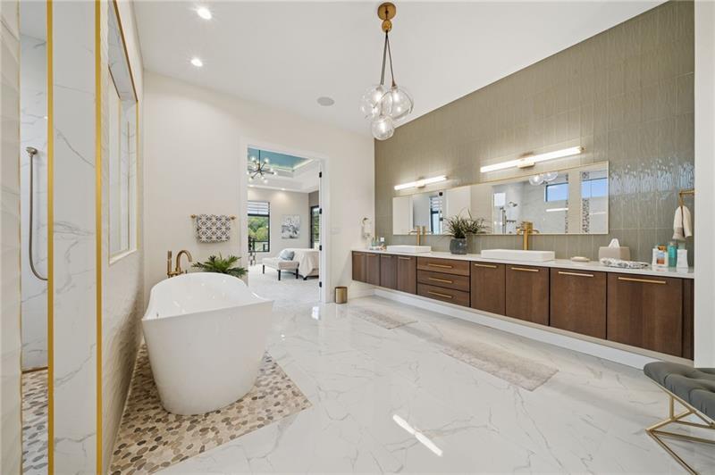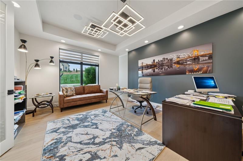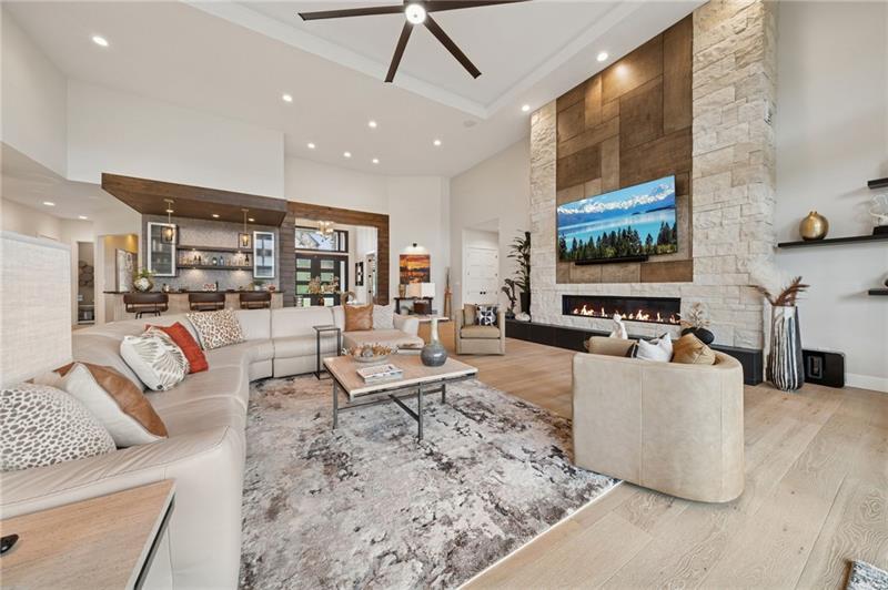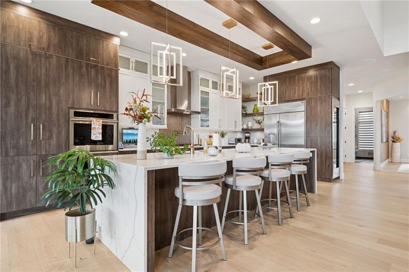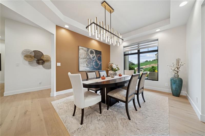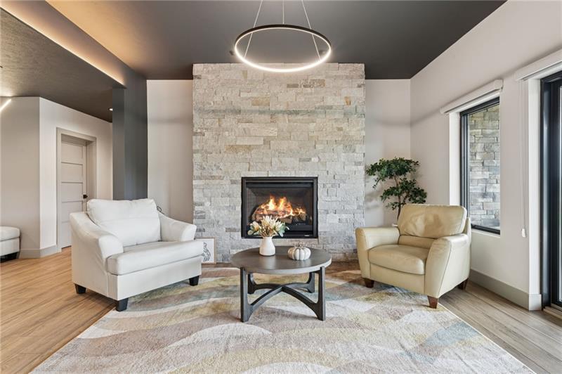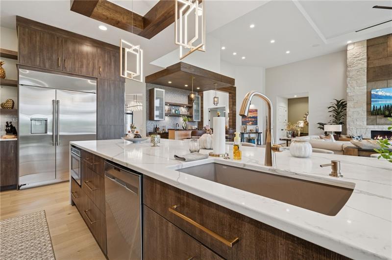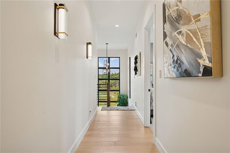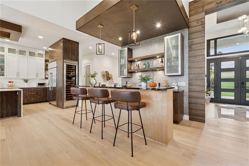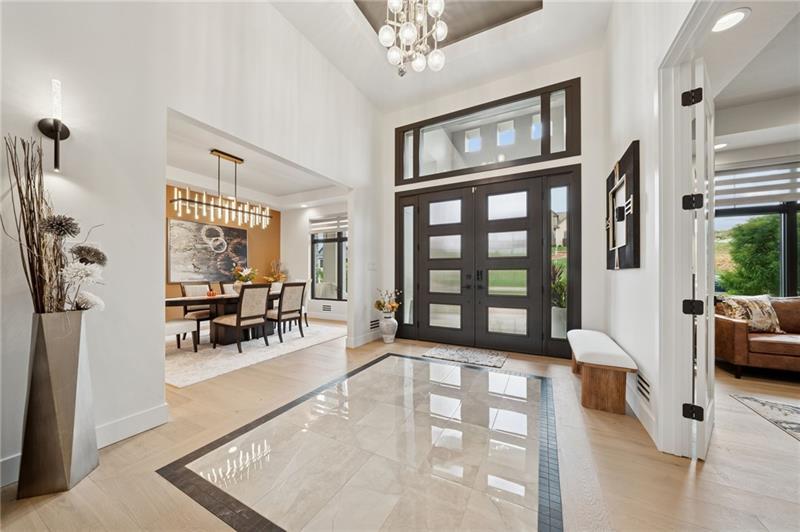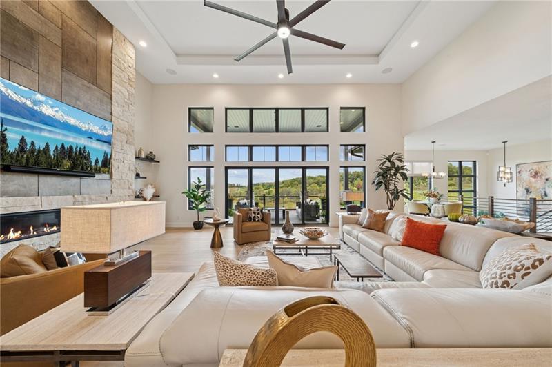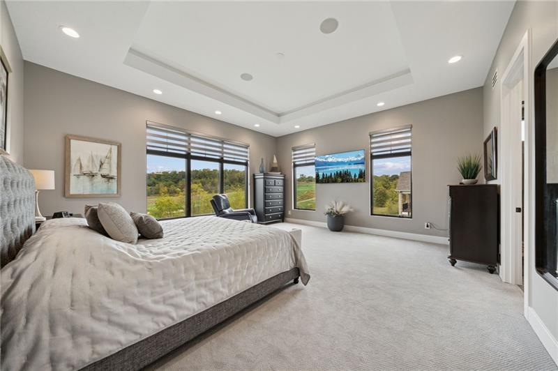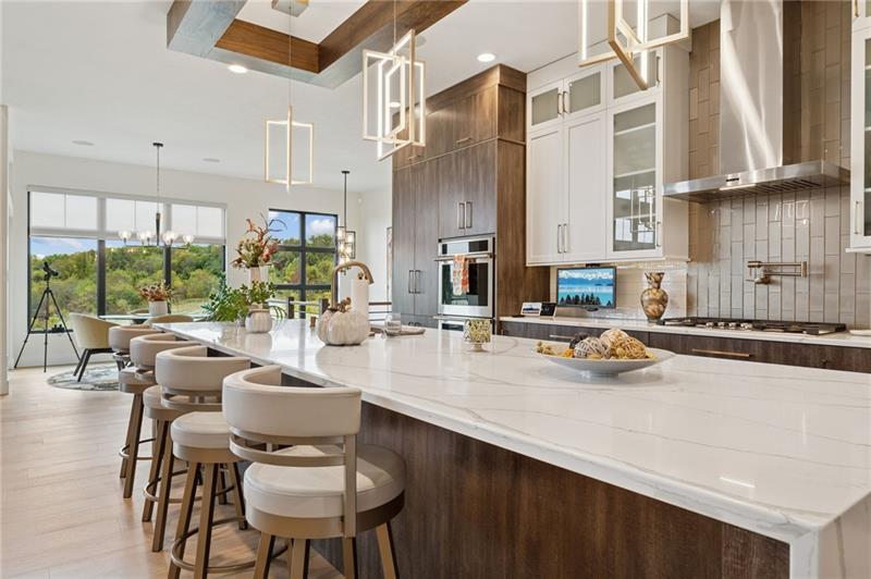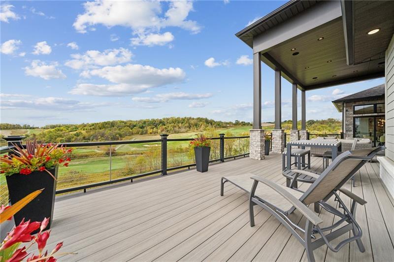 Experience refined living in this custom-built modern ranch overlooking the scenic Totteridge Golf Course, offering panoramic fairway & mountain views. Designed as the builder's personal residence, this home showcases superior construction & elegant design throughout. The open floor plan features soaring ceilings, stone fireplaces, & walls of glass framing the picturesque setting. The designer kitchen includes Omega cabinetry, GE Monogram appliances, & a twelve-foot waterfall quartz island. Two wet bars & beverage refrigerators make entertaining effortless. The primary suite offers tray ceilings, a spa-style bath with soaking tub, and a custom walk-in closet. The walk-out lower level includes a full bar & recreation space, while the nearly fifty-foot deck captures sweeping golf course views. Andersen windows, Sonos sound system, Nest thermostats, 2 EV chargers, & a 3-car epoxy garage complete this exceptional home in The Village of Banbury, minutes from major routes & Greensburg.