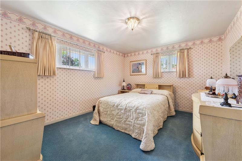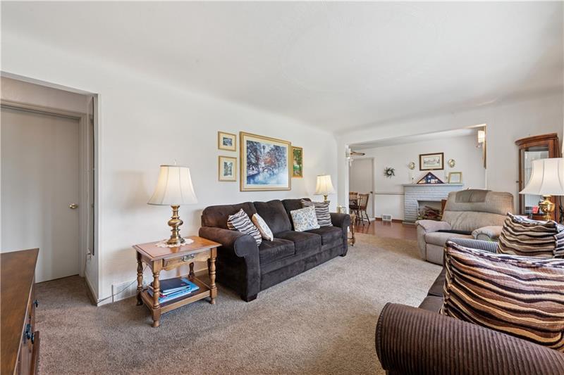 Welcome to 2122 Elizabeth Ct. Located in the Franklin Regional School District on a dead-end street close to all major routes, including Rt 22 and 66, and minutes away from the turnpike and parkway. Exterior: Beautiful ranch home features an all-brick exterior with newer doors, windows and roof. Welcome guests from the elements and watch sunsets from the large covered front porch with a porch swing. The private back yard has a large patio and storage shed to keep the mower and some lawn tool in. Living Room: Welcome guests into the large living room filled with natural light. The room features a beautiful floret design in the ceiling with plaster cove molding. The room also has newer neutral carpeting (hardwoods beneath) and a beautiful bay window. Don't miss the two large closets located near the front door. Dining Room: The dining room connects to the living room and kitchen with no walls between the rooms. The dining room runs the depth of the house and has large windows on both ends. It also includes a door to the large rear patio. It also has a faux fireplace that could be used as a small reading nook. The room is perfect for hosting family gatherings and all the relatives for the holidays (plus a couple of neighbors!). Kitchen: The kitchen features plenty of counter space and storage. The updates in the kitchen include oak cabinets and appliances. Game Room: Downstairs there is a finished family room with a built-in wet bar, perfect for watching sporting events or family movie night. A full bath is steps away. Don't miss the built-in safe around the corner to stash some cash or jewelry for safe keeping. Primary Bedroom: The spacious master bedroom is also flooded with natural light and has a large closet for his and her wardrobe. Secondary Bedroom: The second bedroom is nice size, ample room for two twin beds and a nice closet. Third Bedroom: The smaller bedroom has a nook perfect to house bunk beds tucked into it. This room has no closet. For an older buyer it could convert easily into a first-floor laundry. Basement: The basement contains multiple rooms; some finished with paneling that provide ample storage. One room was used as a 4th bedroom. The laundry room is large and provides ample room for the washer and dryer, an ironing board and has walk up access to the back yard.