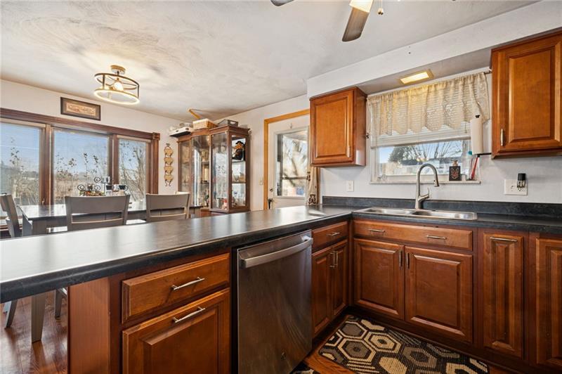 THIS EVER POPULAR L SHAPED RANCH FLOOR PLAN OFFERS AN UPDATED KITCHEN AND MAIN BATH WITH EASY CARE WOOD LOOK LAMINATE FLOORING ALSO IN THE LIVING ROOM .YOU CAN CHOOSE YOUR OWN FLOORING TO REPLACE THE EXISTING CARPETING . MOST ALL WINDOWS WERE REPLACED ALONG WITH THE BACK PORCH ROOF. THE WALL ALONG THE DRIVEWAY WAS REDONE IN 2019 . THERE IS A REAR DECK IF YOU WOULD LIKE TO ADD AN ABOVE GROUND POOL. LOVELY NEIGHBORHOOD! THE DRIVEWAY IS EXTRA WIDE PROVIDING ADDITIONAL PARKING SPACES! MAKE THIS YOUR NEW HOME IN 2026!