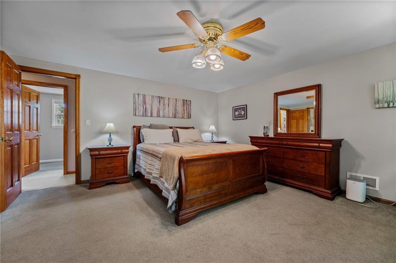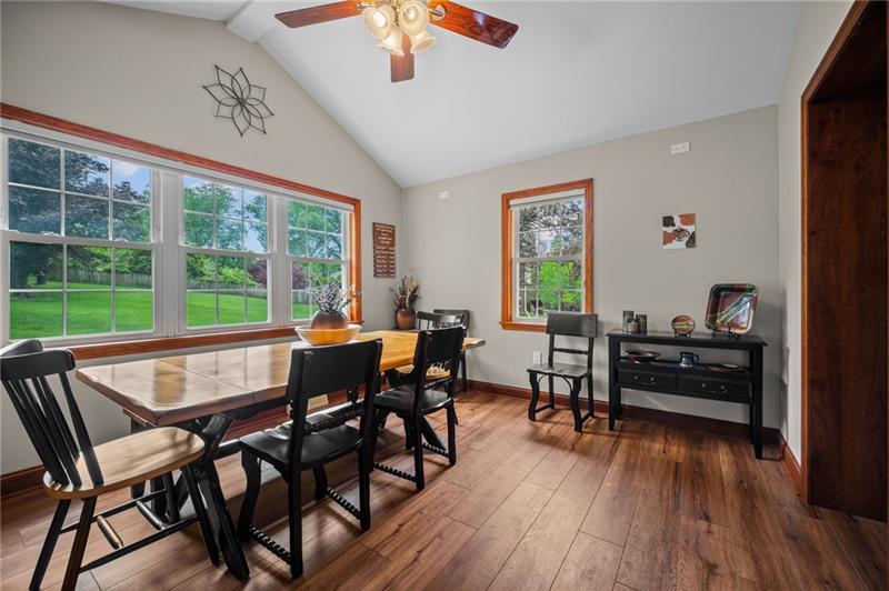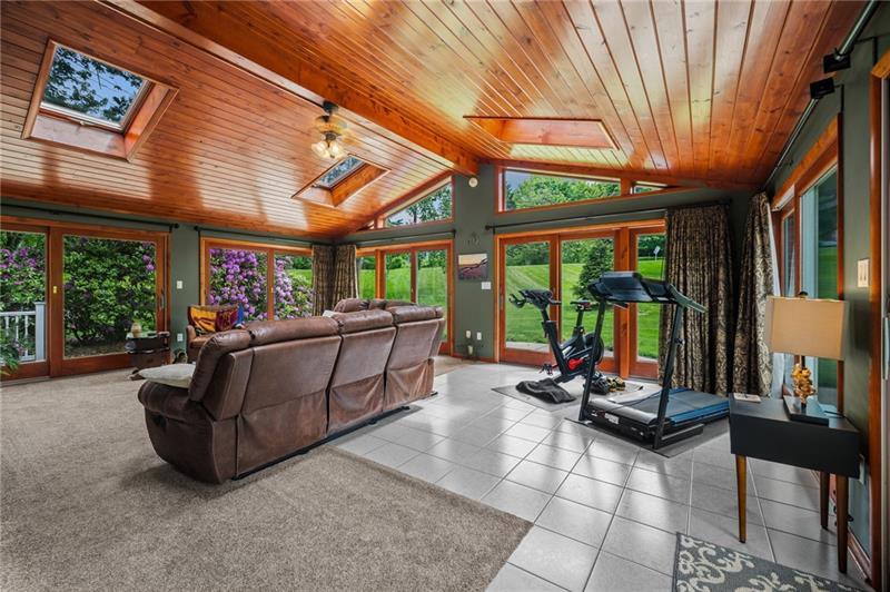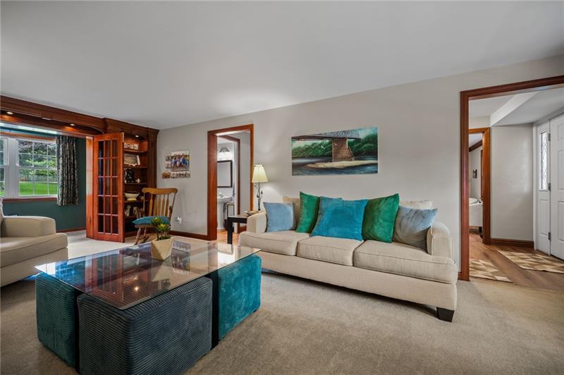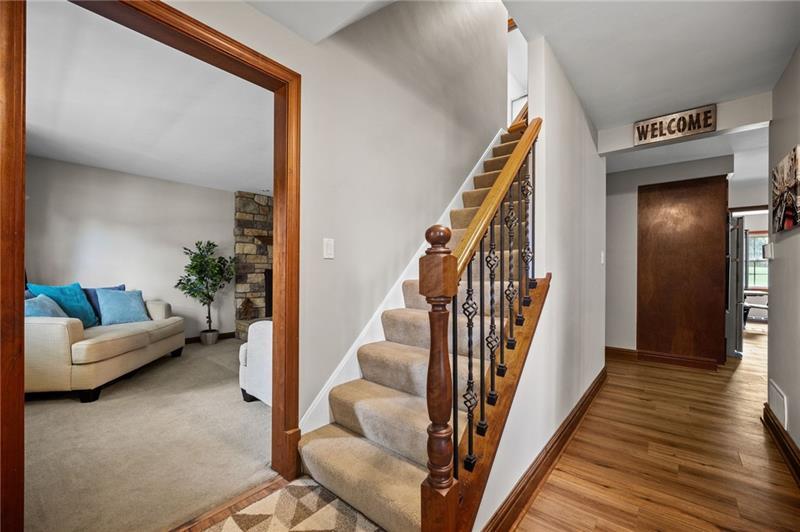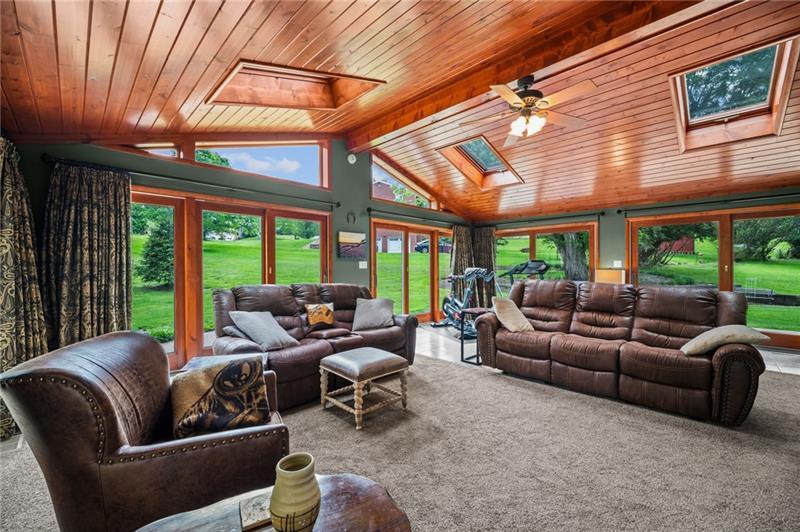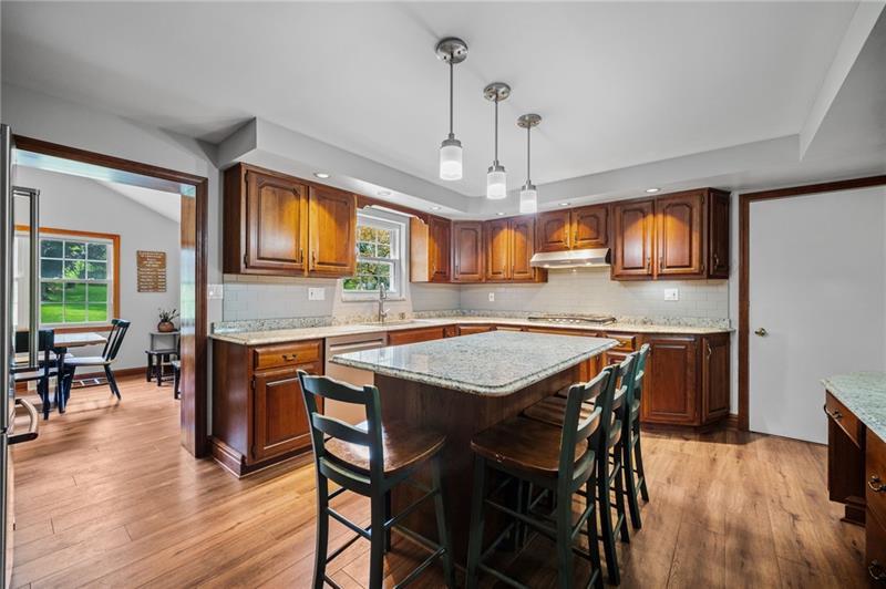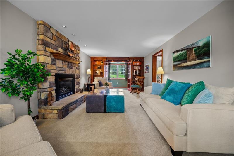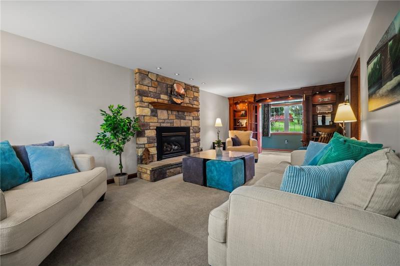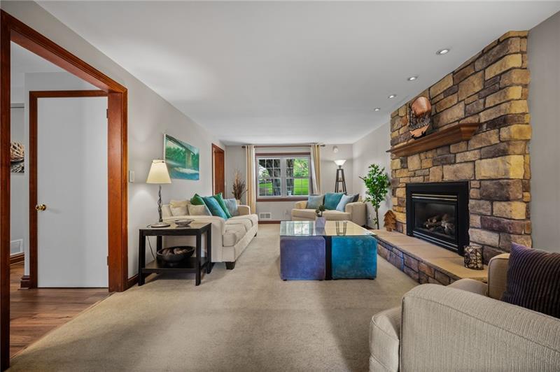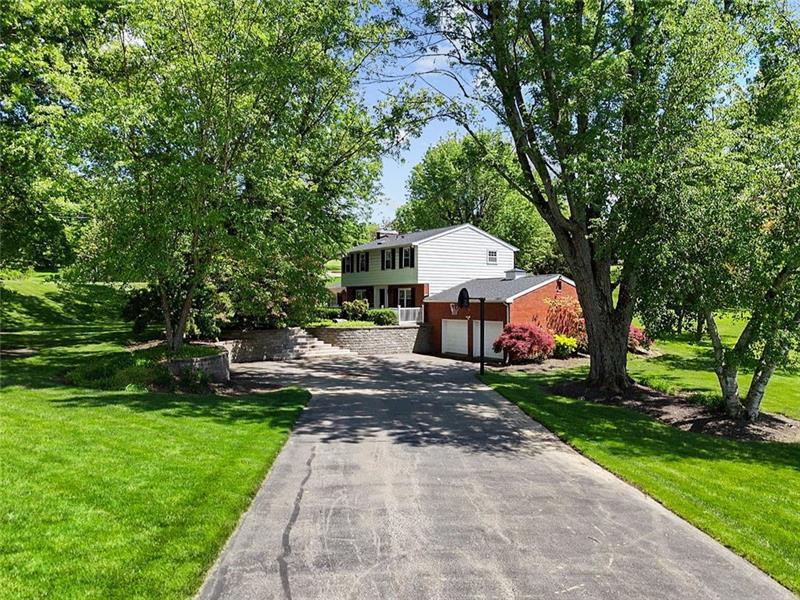 Prepare to entertain family & friends this holiday season in a home built for gathering. Featuring a 24' x 18' great room with an 11' vaulted ceiling"”perfect for that BIG Christmas tree"”this space sets the stage for unforgettable celebrations. The kitchen showcases rich cherry wood cabinets, an island, and granite countertops, along with high-end KitchenAid red-knob appliances including a 5 burner gas cooktop. Set on a nearly 1 acre lot surrounded by mature trees, you'll enjoy exceptional privacy while remaining close to shopping & Franklin Regional Schools. A stone gas fireplace completes the holiday ambiance.The main level also features a vaulted dining room, a den, and a dedicated office. Upstairs, you'll find refinished hardwood floors & 4 spacious bedrooms with 2 baths.The renovated walk-out lower level offers a game room, updated bath, smart laundry area, and a generous workshop. Oversized 2 car garage, extended driveway, & a new roof quite literally top it all off