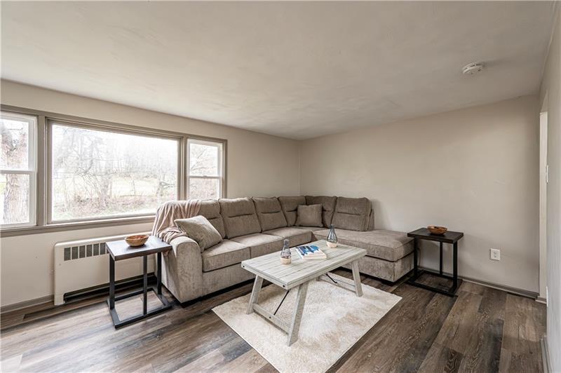 Upon entering you will observe all the many updates in this recently remodeled home (2023). Lots of natural light shines through in the newer updated windows. The neutral painted color palette is a nice accent to the newer luxury laminate flooring. You'll enjoy preparing all of your favorite culinary creations in the large updated eat in kitchen complete with all of the appliances. The spacious living room area is great for relaxing or for entertaining family and friends. There are 3 bedrooms a full bath and a hall walk in closet. The lower level walk out basement has SO MUCH SPACE: a spacious family room area, separate area for your exercise equipment or craft area, another area for storage that has the newer electric boiler furnace and hot water tank (both 2023), laundry area complete with a washer and dryer. The back yard area has a tranquil creek that provides a soothing babbling sound. There are lots of closets and a basement room to accommodate all of your many storage needs! Last but not least the newer roof (2023) is another item to check off for your boxes!!