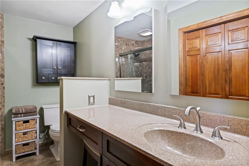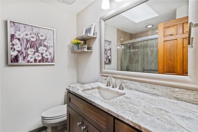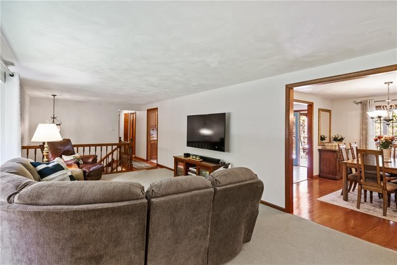 Custom built ~ one owner house ready for it's new owner! This immaculate house is located on 1.5 acres of land ~ so close to everything & yet very private. Walk in the front door to a large, bright & freshly painted living room with a huge picture window. The living room opens into the dining room & right into the kitchen with cabinets galore! Enough countertop space for all of your baking, cooking & entertaining needs! The kitchen has direct access to a covered deck overlooking the wooded rear of the house & backyard. Down the hall from the kitchen you'll find three nicely sized bedrooms. The main bedroom has an ensuite bathroom recently remodeled. The hall full bath was also totally remodeled. Down to the finished lower level game room has a beautiful, cozy fireplace. There is a huge laundry room with direct access to the back yard. An additional room, already plumed, to add a half bath if you chose or it's great for additional storage. This is a must see - move in ready house!