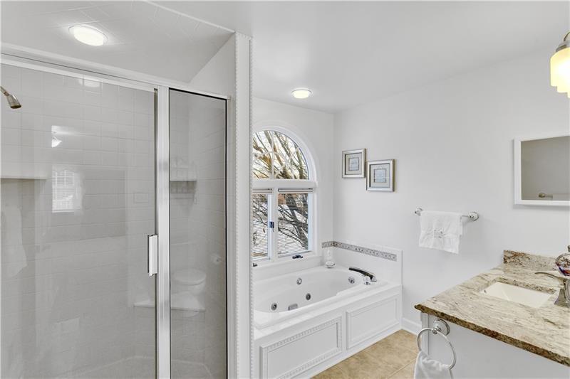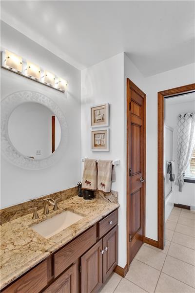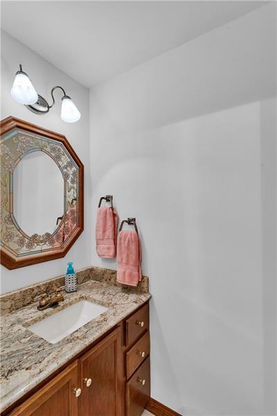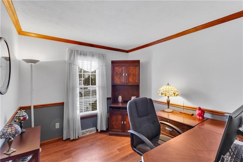 This spacious home is situated on a corner lot that is meticulously landscaped. The updated kitchen features granite countertops, glass mosaic backsplash, a large kitchen island and stainless steel appliances. The kitchen accesses a large Trex deck great for private dining or entertaining. TheĀ family room offers cathedral ceiling, brick fireplace and wainscoting. There is a formal living and dining room with chair rail and crown molding along with a spacious foyer. Hardwood floors highlight the first floor den. The primary suite includes a large walk in closet, ensuite bathroom and abundant light. The home offers large bedrooms throughout. A generous game room with an included pool table features an outside entrance. The laundry room provides cabinets for additional storage. The lower finished level features a convenient half bath and additional space.