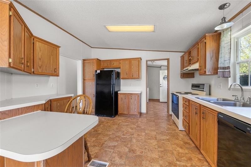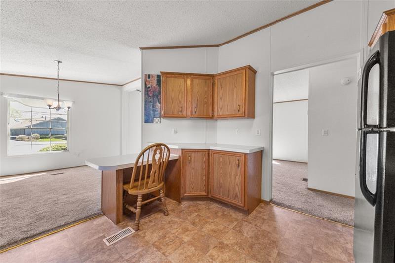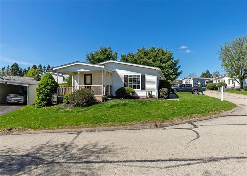 Well maintained home! Newer roof, newer carpeting, neutral walls! Open kitchen area with built in table - vaulted ceilings in living room and dining room allow for plenty of natural light with neutral décor. Two spacious bedrooms with walk in closets and plenty of storage space. Two full baths. Relax on the covered front porch - this is a corner lot so there is plenty of yard plus there is a storage shed and large carport. Spacious laundry room has cabinetry. Convenient location - right across from the clubhouse. Close to shopping, restaurants, etc. Nicely appointed. Very nice home!