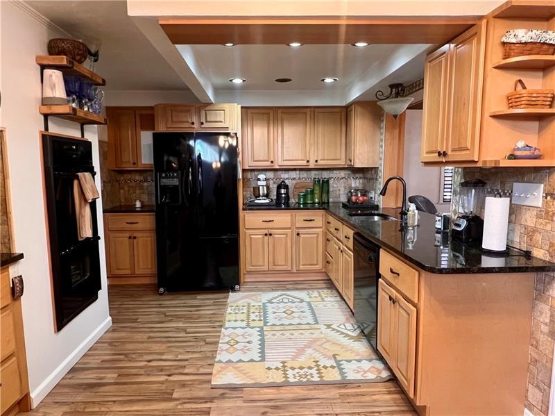 This exquisite custom home is set on a serene 1-acre lot, offering delightful outdoor spaces for relaxation and entertainment. Enjoy the privacy of your back deck or host gatherings on the spacious patio, which features a charming fire pit. The landscaped yard, bordered by mature trees, enhances seclusion. Inside, the home presents multiple levels of living space. The main level includes a welcoming living room with a stone corner fireplace, leading seamlessly to the dining room, where sliding glass doors open to the patio. The kitchen is well-appointed with granite countertops, modern appliances, and ample cabinetry, connecting to a bright morning room adorned with updated lighting and a vaulted ceiling. The second level houses an expansive owner's suite, complete with an office or walk-in closet, a private deck, and a luxurious ensuite bath. The lower level comprises two additional bedrooms, a full bath, a family room featuring a fireplace and kitchenette, a laundry room, and an unfinished area suitable for storage. Additional amenities include a two-car attached garage and generous parking options in the driveway. This residence perfectly combines indoor comfort with inviting outdoor living.