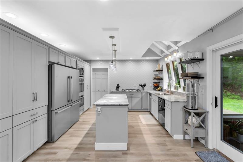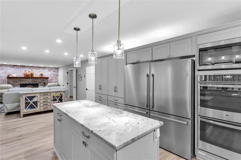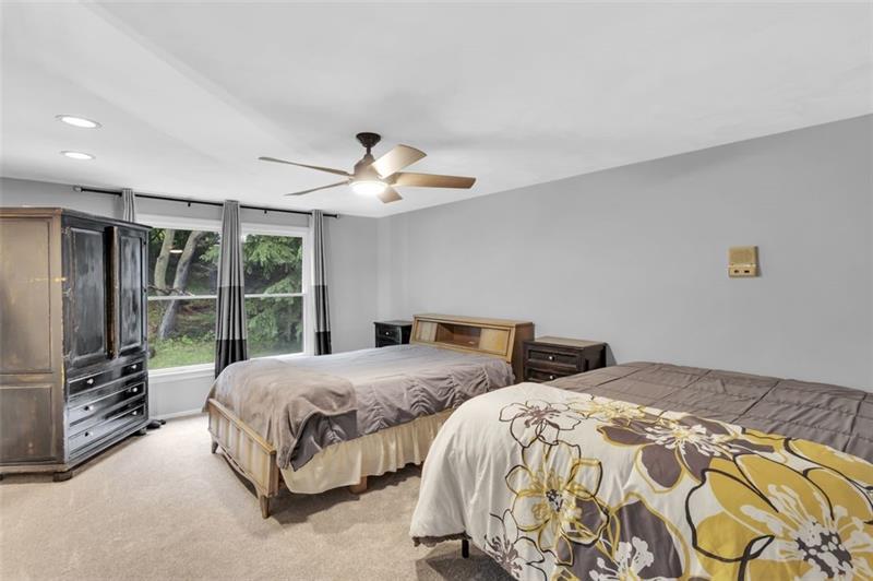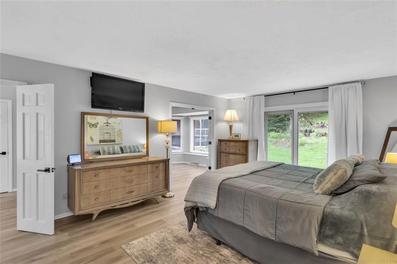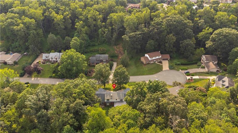 Private Cul-de-Sac, 1/2 Acre Location, Close to Everything + No Step Living in Murrysville! All BRICK DeCesare home offers spacious 1st floor primary suite w/adjoining den/BR, oversized attached garage, and 1st floor laundry PLUS two huge upper level BRs & 2nd bath! Soaring foyer and curved staircase, updated 1/2 bath, and sitting area w/built in window seat greets you at the double door entry. A spacious DiningRm opens to Gorgeous Kitchen w/2 refrigerators, 2 wall ovens, leathered Quartz counters/island, and garden window all open to fireplaced familyrm & 3-season sunroom. The primary suite features a Stunning Spa-like bath & private deck. An updated guest bath, spacious living/flex room, and mudroom to oversized garage & laundry complete the main level. Two 19x13 Bedrooms, loft/storage/walk in attic, and updated hall bath w/massive vanity + separate NEW Tiled shower/tub & toilet room on Upper Level. HUGE Unfinished WO basement, pool/deck & wooded yard, large driveway w/yard access!