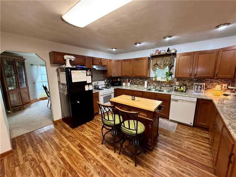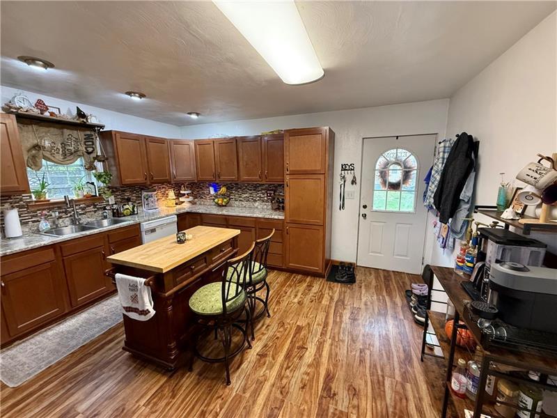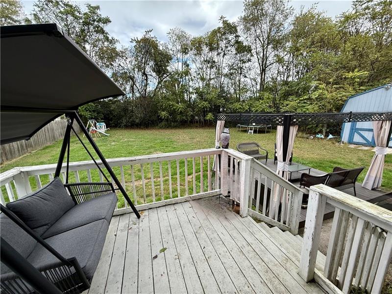 Charming 3 bed  1 1/2 bath home just one block from Kendi Park.  Spacious eat-in kitchen with separate dining room.  Dining room leads out to the back deck through the sliding glass door which overlooks the large, private backyard.  Large living room with lots of natural light.  First floor half bath.  3 bedrooms and full bath upstairs.   Plenty of off-street parking.  Shed for all of your storage needs.  Within walking distance to the bike trail, Kendi Park and downtown Scottdale.