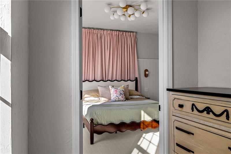 Beautifully renovated Victorian in the heart of Ligonier, offering timeless character with a clean, contemporary aesthetic. Bright and open layout with classic details and modern finishes. The first floor features a crisp kitchen with a 12-foot quartz island, brass hardware, and abundant storage, flowing into a formal dining area and a versatile first-floor bedroom suite with its own bathroom and laundry access, ideal for guests, office, or first-floor primary. Upstairs, the primary suite includes dual walk-in closets and a serene ensuite with nickel gap wainscoting and Calacatta Viola-inspired porcelain. Two additional bedrooms share an updated Jack-and-Jill bath. High ceilings and oversized gridded windows fill each room with natural light. Exterior highlights include a wrap-around porch, refreshed black-and-white facade, and clean landscaping. One off Street Parking Space - Luxury living just moments from shops, dining, and the Diamond --- move-in ready and truly one-of-a-kind!