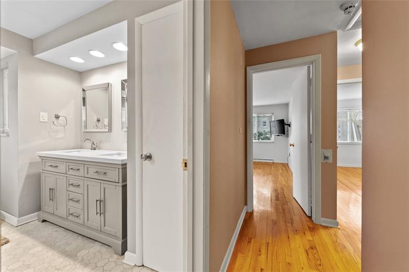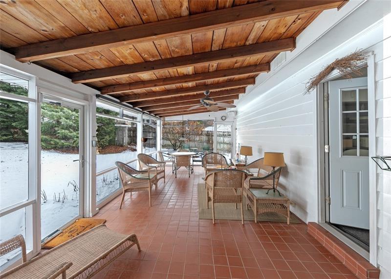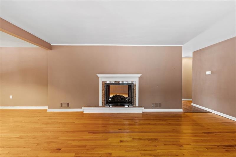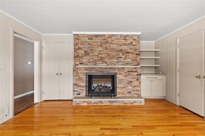 Charming 3 Bedroom 2 Full bath brick home nestled on a quiet dead end street with a beautiful level fenced park like backyard! This inviting property features a stunning two-sided, stone sided gas fireplace that adds warmth and character to the family room and living room along with gleaming hardwood floors. The updated kitchen boasts quartz counter tops, abundant cabinet space and generous counter space - perfect for cooking and entertaining. Built in drawers in the hallway provide smart, functional storage. Relax on the 26x13 screened in porch overlooking the peaceful backyard. A huge unfinished basement with fireplace offers endless potential for expansion, storage or customization to fit your needs.