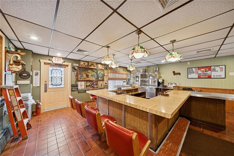 Here is a once-in-a-lifetime opportunity to own a beloved piece of commercial history in the heart of Harrison City. Formerly Janet's Restaurant and Dairy Barn. This iconic property offers a spacious, fully equipped working kitchen, a classic sit-down dining area, and a convenient walk-up service window with outdoor seating. Potential living space above restaurant with full bathroom. Additional parking is available just across the charming, covered bridge enhancing accessibility and customer flow. A rare chance to revive a local favorite or bring a new vision to a landmark location.