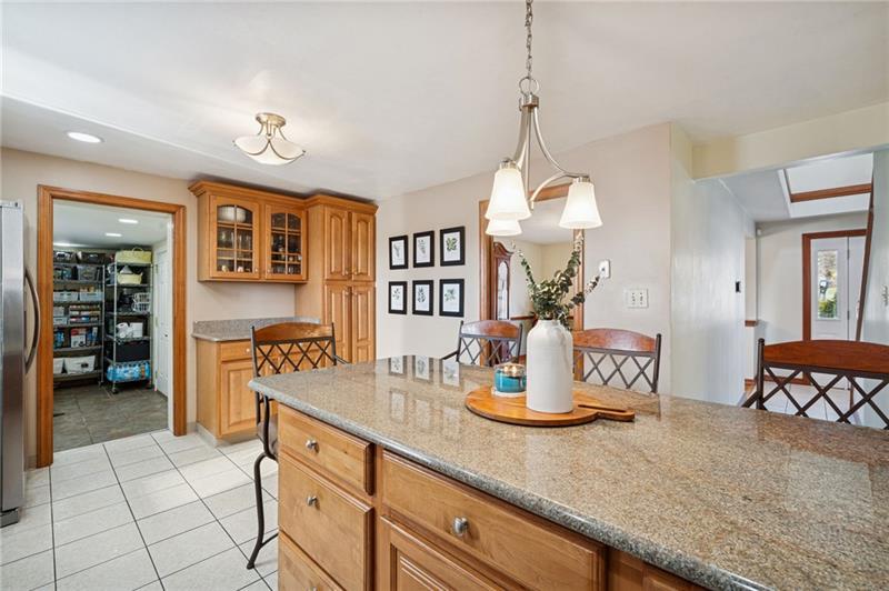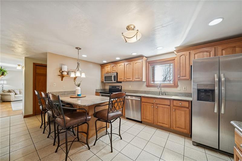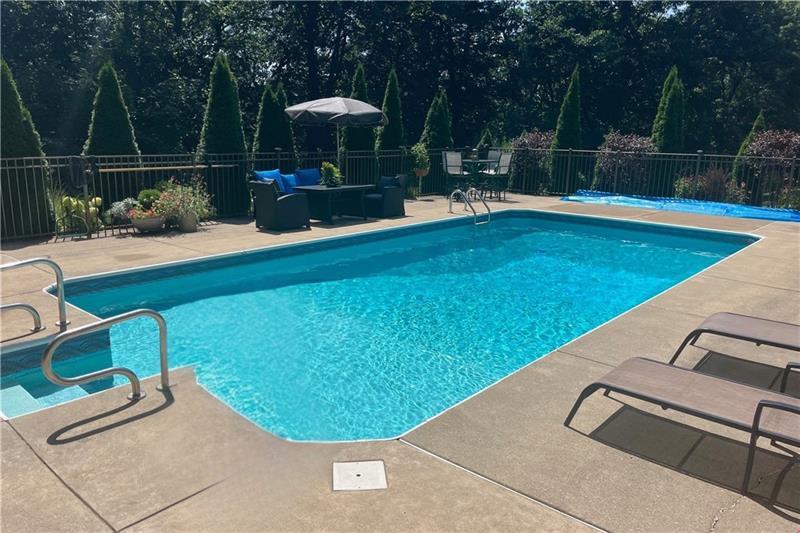 Tucked in the sought-after Murry Highlands plan, this home is something truly special. A dramatic two-story foyer welcomes you in, while a striking two-sided fireplace connects the living and family rooms, adding warmth and architectural character. The eat-in kitchen features a generous peninsula and an easy flow for everyday living. A large dining room is ready for holidays and dinner parties, and first-floor laundry adds everyday convenience. Upstairs, the primary suite feels like a retreat with multiple skylights, a spacious ensuite, and a large walk-in closet. But the real showstopper? What makes this property truly amazing is the incredible lower level and stunning outdoor living space. A HUGE game room with dining area, fireplace, and bar is complemented by a separate exercise space, full kitchen, full bath, and abundant storage, all with immediate access to your outdoor paradise. Spend your summers enjoying the beautiful in-ground pool and multi-level deck! Set on a stunning 1.3-acre wooded lot with beautiful, mature landscaping, this space offers privacy, natural beauty, and a truly special outdoor setting. Minutes to Route 376 and the heart of Murrysville, this home offers exceptional living space inside and out.