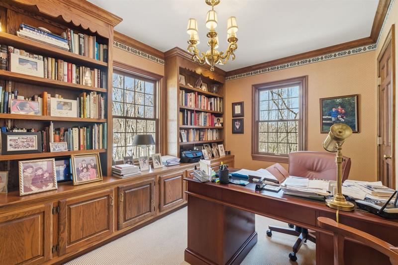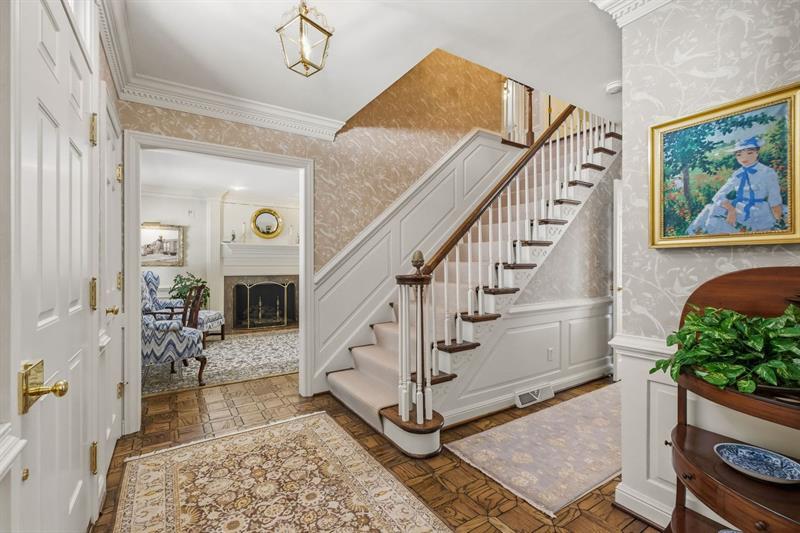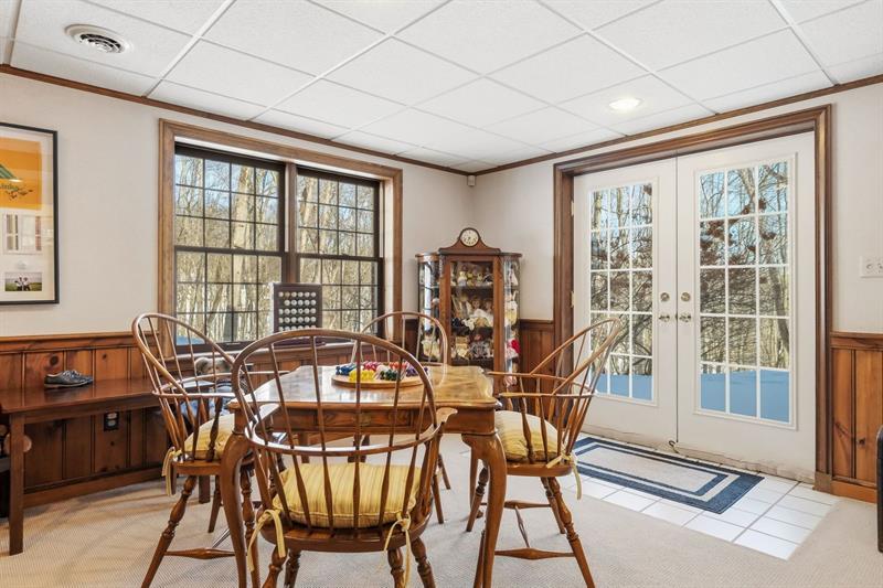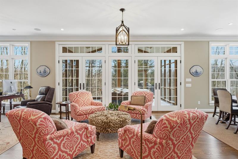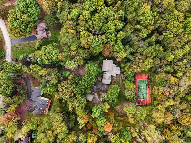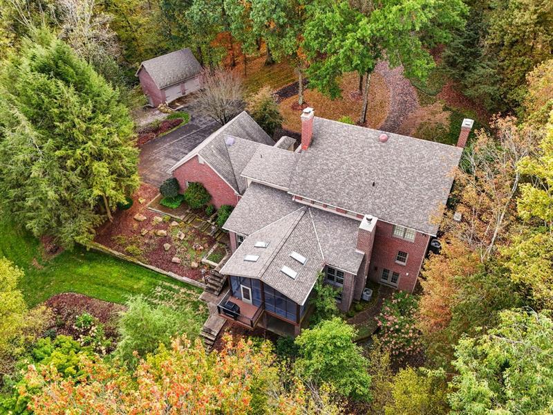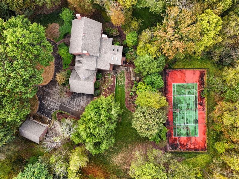 Nestled on a serene, tree-lined, estate-like setting, this traditional brick Colonial offers an extraordinary blend of classic architecture and modern comfort. Featuring four spacious bedrooms and four full plus two half bathrooms, the home welcomes you with thoughtfully curated updates that enhance its timeless charm. Step inside to discover warm, inviting living spaces. The great room serves as the heart of the home, showcasing two elegant fireplaces that anchor the space with character, along with a generous dining area ideal for gatherings. Large windows frame picturesque views of the private backyard, while French doors open to the screened-in deck, creating a seamless indoor-outdoor flow perfect for relaxing or entertaining. Complementing the home's classic design, you'll also find a formal dining room and a gracious living room. Outside, enjoy unparalleled privacy and resort-style amenities, including a private tennis court. The finished, walk-out lower level expands the living space even further with a fully equipped gym, a temperature-controlled wine room, a fireplace, a wet bar, an office area, and an additional dining area"”ideal for hosting or unwinding. Car enthusiasts will appreciate the dual garages: a 2-car attached and a 2-car detached, providing ample space for vehicles, storage, and hobbies.
