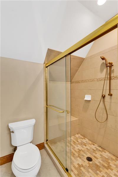 Quality construction by DeCesare Properties is evident throughout this custom-built Craftsman-style, level-entry condo. A stamped walkway, portico, and driveway welcome you into a warm, inviting entry. The formal living room or music room features a soaring vaulted ceiling, while the bright, open floor plan is anchored by a dramatic two-story family room with a floor-to-ceiling stone fireplace, a wall of windows, and access to a covered porch. The ultra-open eat-in kitchen showcases a massive quartz island and countertops, soft-close cabinetry, and pantry, seamlessly flowing into the formal dining room with tray ceiling and extensive custom woodwork. The main-level primary suite offers an ensuite bath, walk-in closet, and private walkout to the rear porch. A laundry room and powder room completes the main floor. Upstairs, a spacious loft overlooks the family room, along with two sunlit bedroom suites, each with a private bath and walk-in closet, plus generous storage area. The finished walkout lower level adds approximately 1,500 sq ft, offering a large game room, full bath, storage or gym space, and plumbing for an additional bath and kitchen, with multiple access points to a covered patio. A deep two-car attached garage and additional off-street parking complete this exceptional home.