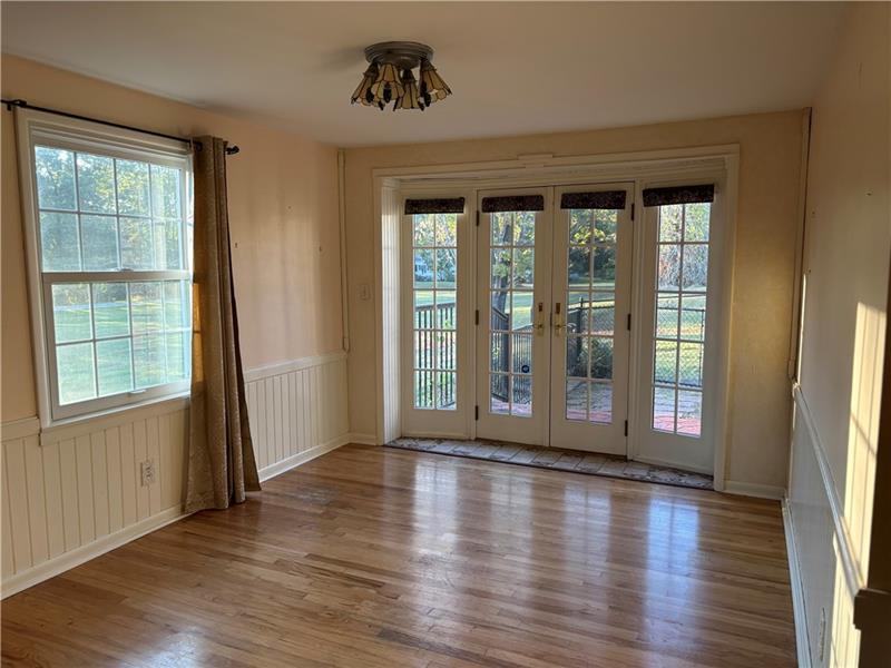 Charming 3 bedroom, 3 full bath Ranch home with plenty of character! Inviting kitchen with breakfast area ,large wooden island and stools. Dining room with French doors that open up to the fenced in back yard. Living room with woodburning fireplace, built-ins, additional French doors leading to the large covered porch. Den off of the living room with closet and built-in bookcases can be used as a library or as a forth bedroom if desired. Large Master bedroom with on suite, woodburning fireplace and bay window for an abundance of natural light! Laundry room off of Master with washer and dryer and more built-in storage! Peaceful setting, abundance of wildlife, perennials, close to Restaurants, shopping and hospitals as well as US Route 22, Parkway and PA Turnpike. Move in ready!
