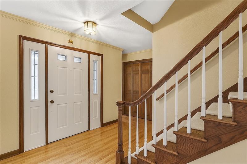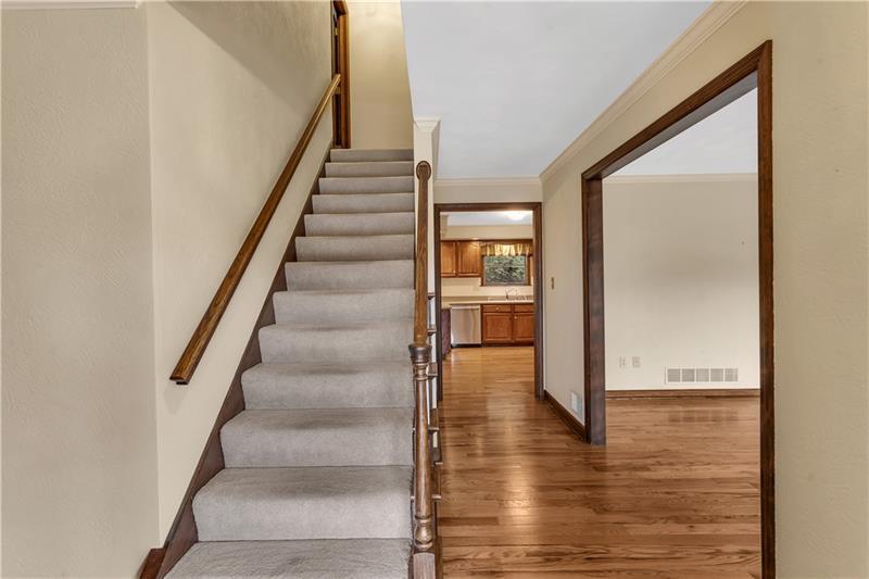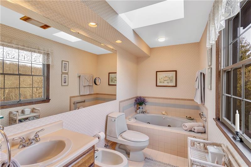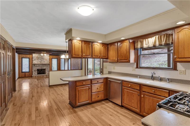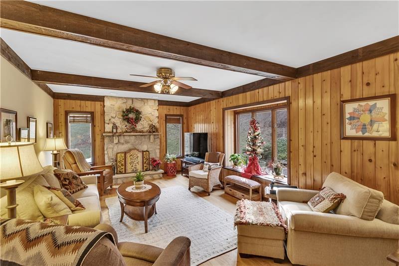 Original Owner, Custom Baleno Built, Tudor Inspired Home on Private, Professionally Landscaped Lot, Just Under 1 Acre in Desirable Murrysville Neighborhood! Level Walkway with New Solar Path Lighting Leads to a Welcoming, Covered Front Porch. Inside You Will Appreciate the Gorgeous Light Oak Hardwood Floors Installed in 2021 and Fresh Neutral Painted Walls That Continue Throughout the Main Level. Other Notable Quality Features Include Crown Molding, Plaster Walls, 6 Panel Solid Wood Doors, and Plaster Ceiling Medallions. The Living Room is Highlighted by a Window Ledge and Gorgeous Views, and Opens to a Dining Room with Chair Rail, Updated Lighting, and Double Windows with Yard View. The Adjacent Eat in Kitchen at the Heart of the Home Opens to a Covered Deck and Semi-Private Yard with Water Feature and Stone Patio. The Dining Area of the Kitchen Opens to a Spacious Family Room with Gorgeous Stone Fireplace, Bump-out Feature Window, Impressive Tongue & Groove Wood Wall, and Wood Ceiling Beams. The Layout Makes Hosting Large Groups a Breeze, Providing an Nice Flow for Both Indoor and Outdoor Entertaining and Relaxing. Updated Appliances Include Bosch Dishwasher, LG Gas Stove, and a Samsung Refrigerator with Bottom Freezer. Solid Surface Counters, Molded Double Sink, Fresh Tile Backsplash, and Beautiful Wood Cabinets with Unique Hardware Complete the Kitchen. The Convenient First Floor Laundry, Guest Half Bath, and Attached Garage Complete the Main Level. Find Four Spacious Bedrooms with Ample Closet Space, Including a Primary Suite with Large Walk in Closet and Private Bath with Jacuzzi Tub, Shower and Bidet, Plus a Hallway Full Bath with Double Vanity, Skylight, and Tub/Shower on the Upper Level. Need More Living Space or More Storage? The Finished Lower Level Provides a Walkout Gameroom with Neutral Carpet and Paint, and Large Unfinished Storage Room, and a Second Storage Room with Plumbing for a Future Bathroom. Extremely Well-Maintained Home is Move In Ready with New Wood Floors & Carpet in 2021, Carrier HVAC in 2019, Rear Patio 2016, and Roof 2012!