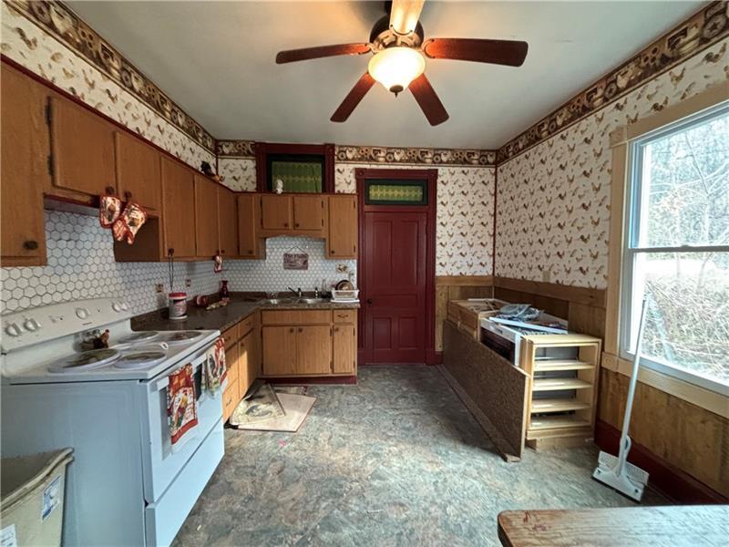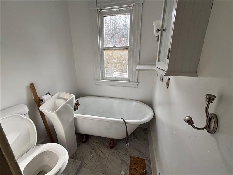 Farmhouse style home to be sold AS-IS to creative investor---Out of the way, yet Convenient Location on two Parcel numbers--The Property extends to the Penn-Adamsburg Road, with off-street parking--Seller has made some improvements, such as 6yr heating system and metal roof--Definitely worth a look and buyer ideas