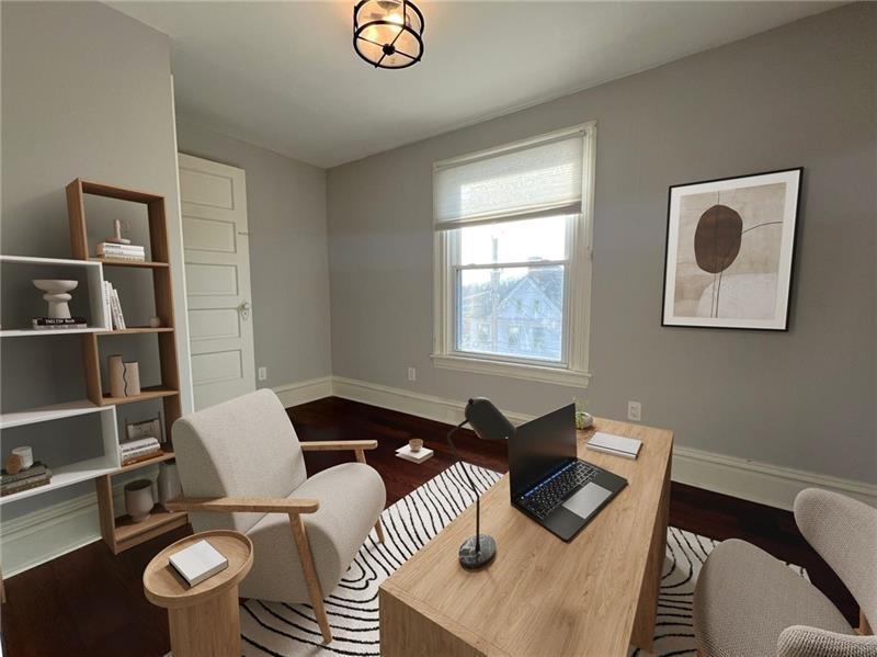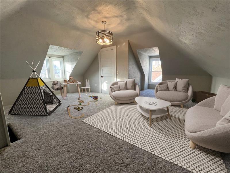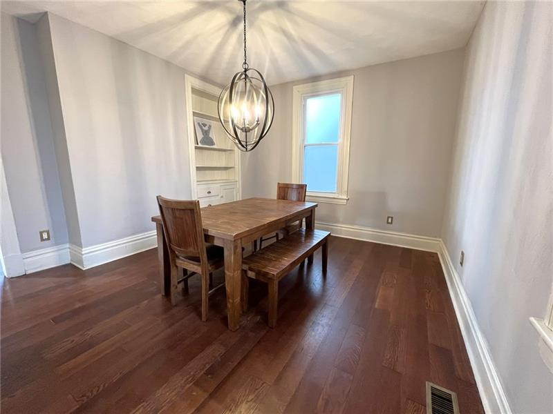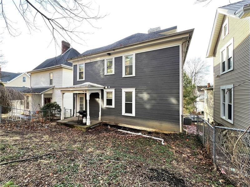 Move-in ready and rich with original character! This home welcomes you from a covered front porch into a grand entry showcasing high ceilings and beautifully preserved woodwork. The main level offers a spacious living room with hardwood floors and a decorative fireplace, flowing seamlessly into a formal dining area with classic built-ins. A generous eat-in kitchen features granite countertops, abundant natural light and direct access to the fenced backyard, ready for your personal vision. A freshly updated powder room completes the main level. Upstairs, you'll find four well-sized bedrooms and an updated full bath. The primary suite features a decorative fireplace. The fourth bedroom provides access to the third level, a flexible space ideal for a living area, private suite or playroom. Original details and glowing hardwood floors carry throughout. Ideally located in Greensburg, just steps from Seton Hill University and The Palace Theater. Enjoy the shops, dining at the Train Station and culture of downtown Greensburg only a few blocks away.