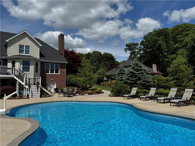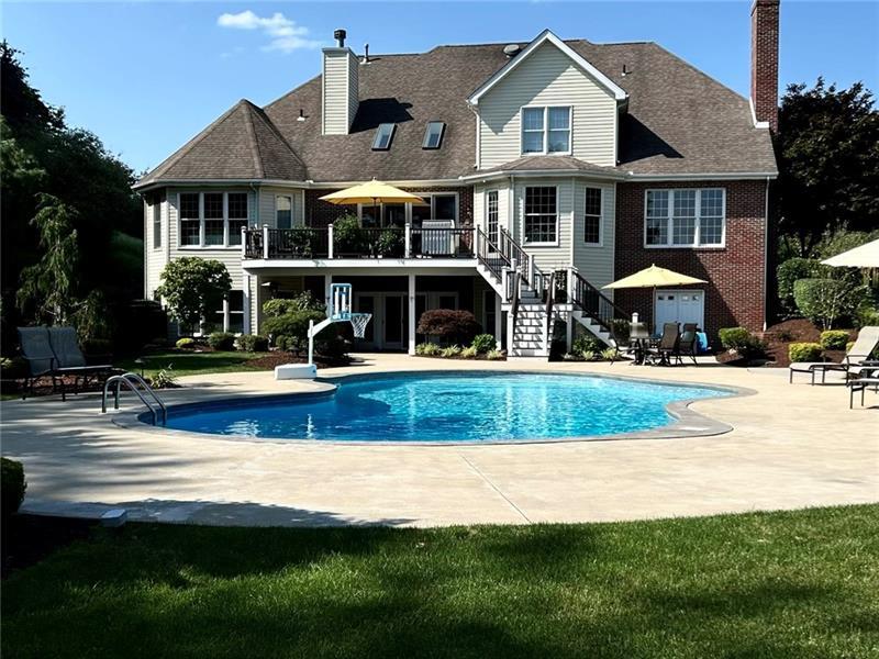 Welcome to this stately and beautifully maintained 6 bedroom brick residence located in the highly desirable Fair Oaks Manor neighborhood, within the sought-after Franklin Regional School District. This impressive property offers a rare combination of space, elegance, and modern updates, making it ideal for both everyday living and entertaining. As you arrive, you'll immediately notice the home's timeless curb appeal, enhanced by professional landscaping and a welcoming presence. The expansive 1.2 acre lot includes a fully fenced, level, rear yard, offering privacy and security, along with a large inground heated saltwater pool"”perfect for relaxing summer days or hosting unforgettable gatherings. As you enter the 2 story foyer you will love how the open-concept design seamlessly connects living spaces which includes a first floor Den, a formal Dining Room, a 2 story Great Room w/gas fireplace and built-in bookcases, a 2 story Family Room with a stone gas or wood burning fireplace and a fabulous Kitchen with plenty of cabinets, an island, granite counter tops, a walk-in pantry, counter seating and a breakfast area. There is also a wall of windows creating a warm and inviting atmosphere. Beautiful wood floor extends throughout the main level. With six generously sized bedrooms, this home offers flexibility for growing families, guests, or home office needs. The walk-out lower level is an exceptional feature, measuring an expansive 52x21 area and is perfectly suited for a private "IN-LAW" suite. It's fully functional space includes a bedroom, full bath, kitchenette, and a comfortable living area"”ideal for multi-generational living or extended stays. The lower level also has media room that could also be a home gym. Significant updates provide peace of mind and modern efficiency, including a new roof installed in May, 2025, two hot water heaters June, 2025 and two furnaces along with two air conditioning systems updated in June 2021, ensuring year-round comfort. This home truly combines luxury, practicality, and location. Whether you're enjoying the serene outdoor setting, entertaining by the pool, or taking advantage of the spacious interior, this property offers an exceptional lifestyle opportunity. Don't miss your chance to own this remarkable home that perfectly balances classic elegance with modern convenience. There is so much storage in the "bonus" area, in the attic and 2 areas in the lower level. An entertainer's delight inside and out! Plan your summer parties now!