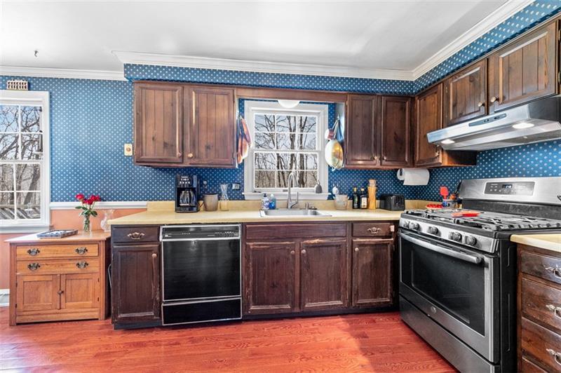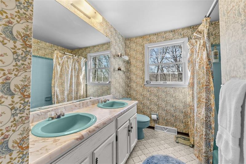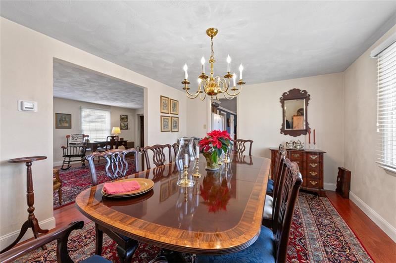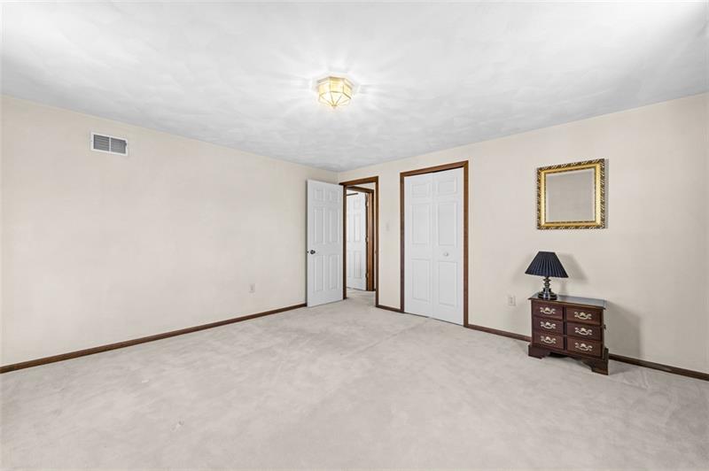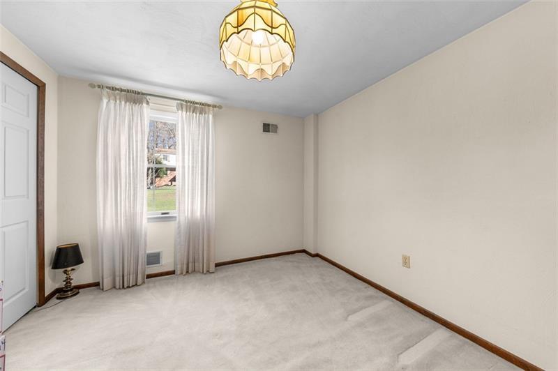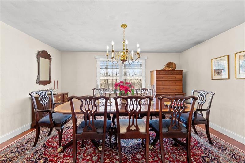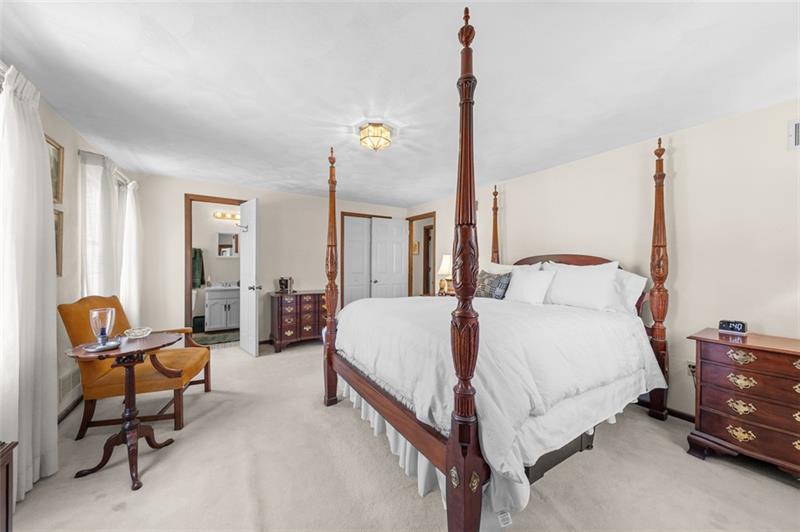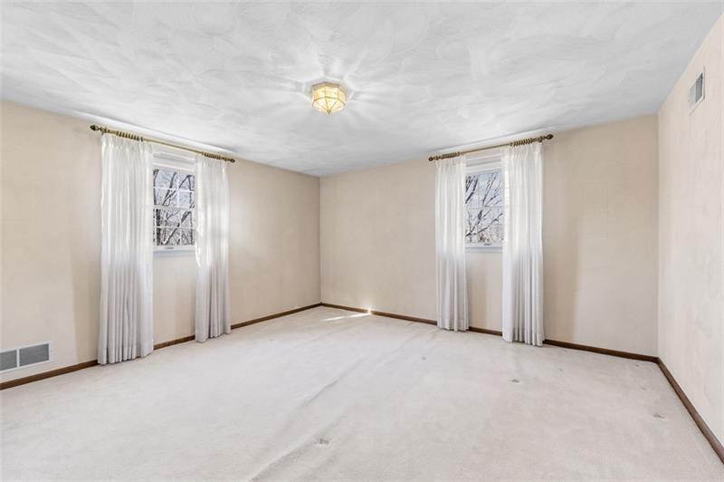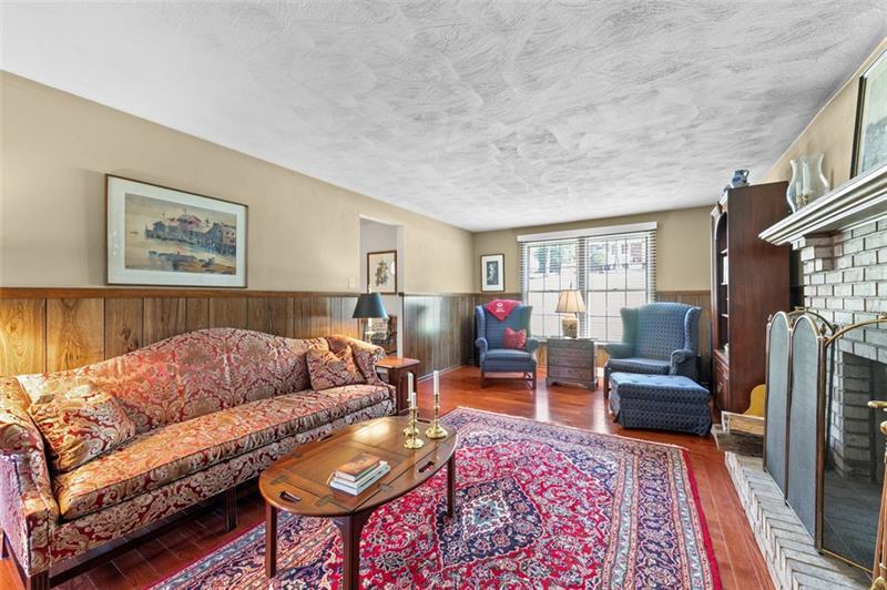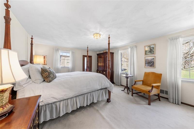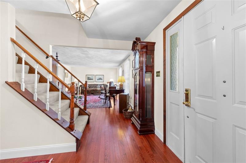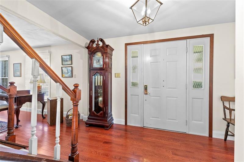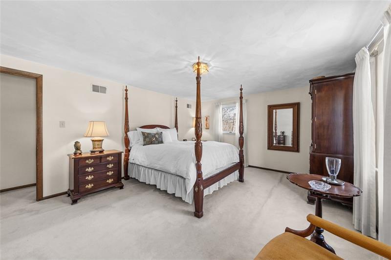 Situated on a picturesque lot in the heart of Murrysville and Franklin Regional School District, this spacious two-story Colonial residence offers exceptional living both inside and out. The main level features rich hardwood flooring and a thoughtfully designed layout ideal for everyday living and entertaining. The owner's suite is conveniently located on the first floor, providing privacy and ease. A generous eat-in kitchen offers, a pantry for additional storage, and seamless flow into the inviting family room, highlighted by a wood-burning fireplace. Formal gatherings are easily accommodated in the living and dining rooms, while the den provides the perfect space for a home office or quiet retreat. The sun room overlooks the park-like, tree-lined backyard, creating a peaceful setting to relax and enjoy the natural surroundings. Upstairs, four spacious bedrooms and two full baths provide comfortable accommodations for family and guests alike. The semi finished lower level expands the home's living space with a large game room featuring a second wood-burning fireplace, an additional room well-suited for a pool table or hobby space, a laundry room complete with washer and dryer, and a substantial storage closet. A two-car integral garage offers added convenience and protection from the elements. Ideally located with easy access to Route 22, the Parkway, and the Turnpike, this home is just minutes from dining, shopping, golf courses, and everyday amenities while offering the tranquility of a private, wooded setting.