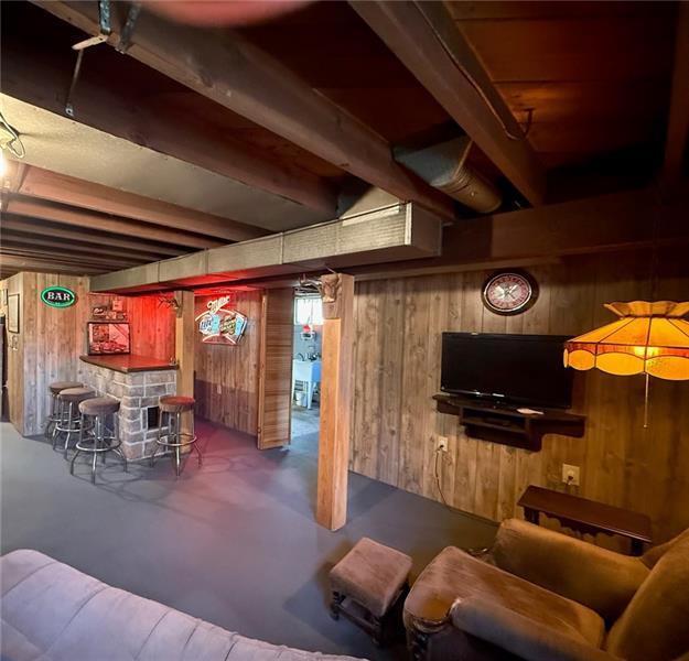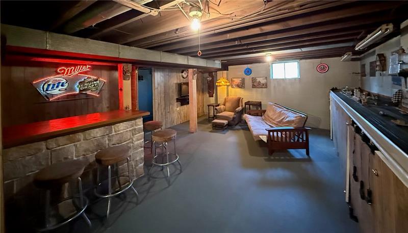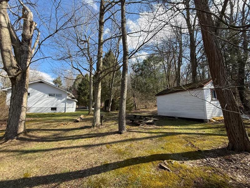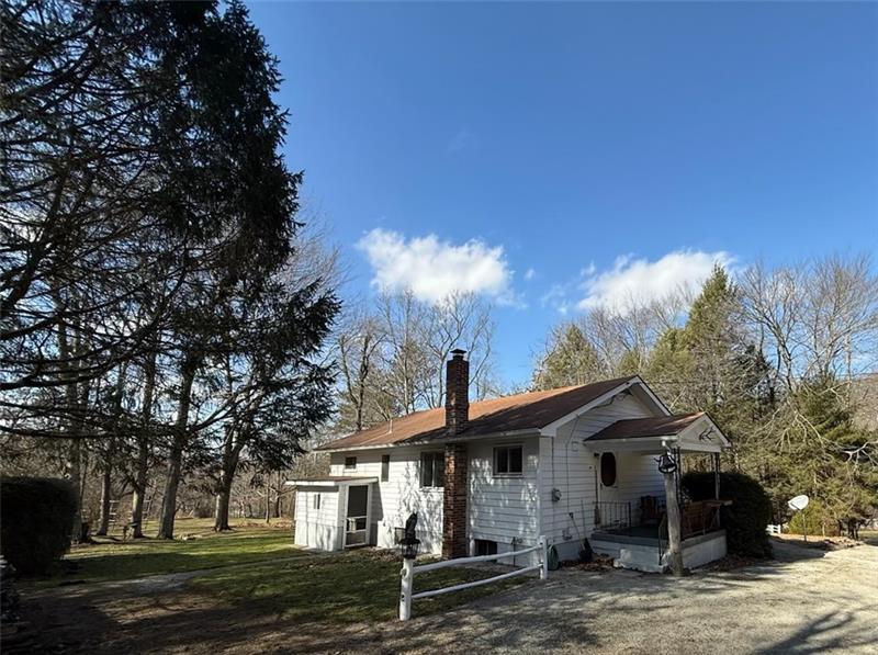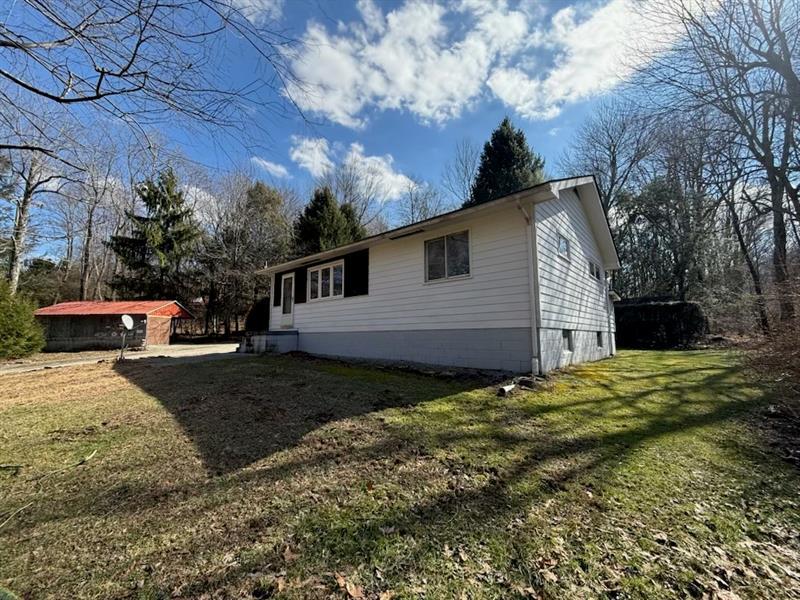 This beautiful home is nestled in the woods on 1.5 acres, bordering state game lands for added privacy and natural surroundings. Offering two bedrooms, one bath, and convenient one-level living, this home is perfect for those seeking a peaceful, secluded setting. The lower level features a semi-finished space with painted floors and walls, complete with a built-in bar"”ideal for entertaining or additional living space. Outside, you'll find a two-car open-air carport and a storage shed. A new furnace is currently being installed, and the entire upper level is freshly painted. A lovely home awaiting the perfect owner who values privacy, nature, and comfort.