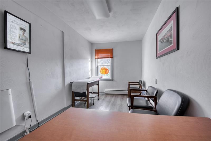 This solid brick office building, in the heart of Murrysville, could be the home of your next medical practice, chiropractic office, med-spa or other business. Located between Dick's Diner and Mother of Sorrows church, this two story building has over 70 feet of frontage where over 6,000 vehicle pass each day. There is 1,450 square feet on the first floor and 1,250 square feet on the second floor and separate utilities for each. The first floor has a large reception area, lots of exam rooms and office space, as well as a kitchenette and two restrooms, one of which is ADA accessible. The second floor also has a waiting room, several exam rooms and office space as well as a lab area and a break room. A furnac