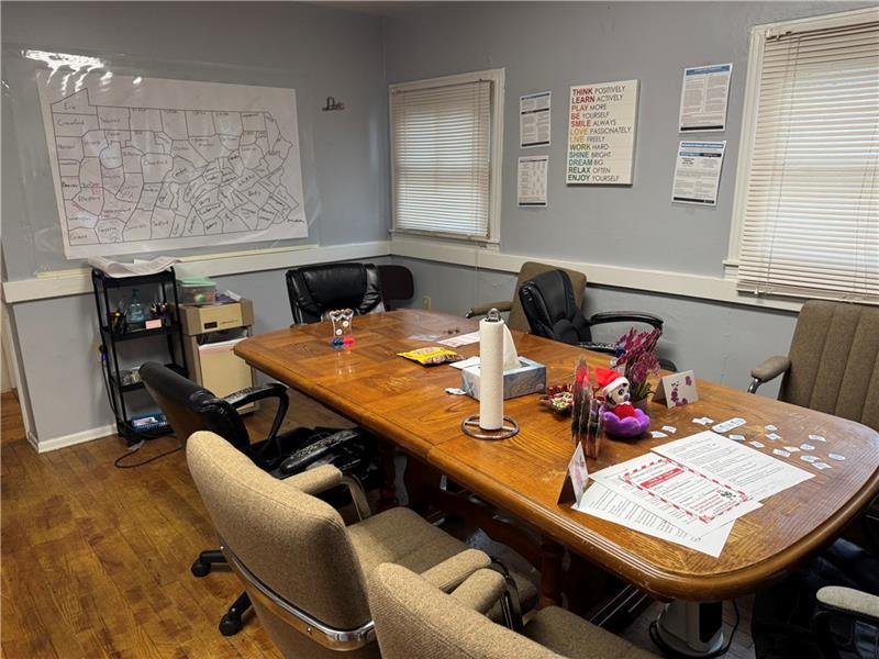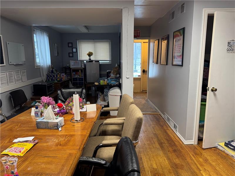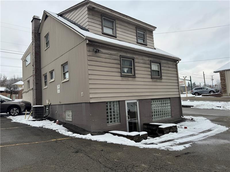 Well-located commercial building in the heart of Murrysville with outstanding visibility and traffic counts along Rt 22. This versatile property offers three distinct office areas plus a rear warehouse with a loading dock, making it ideal for owner-occupants or investors. The first floor is currently rented through January 2027 and features multiple offices, a conference room, and a restroom. The second floor includes several offices, a kitchenette, and a bathroom. The lower level adds two additional office spaces and a bathroom, providing even more flexibility. Over a dozen on-site parking spaces support both staff and clients. Excellent rental potential or a smart option for a business seeking a prominent, high-exposure location with mixed office and warehouse functionality.