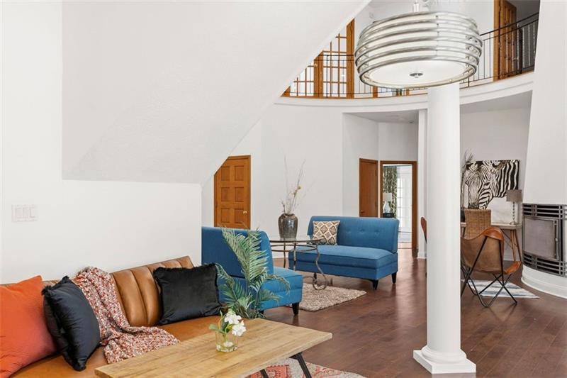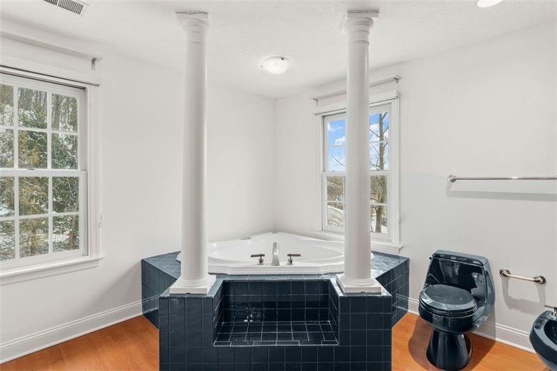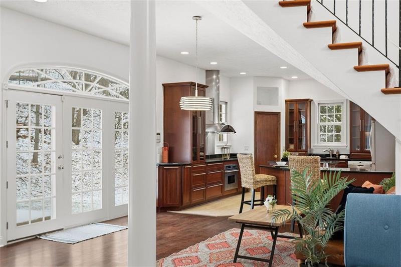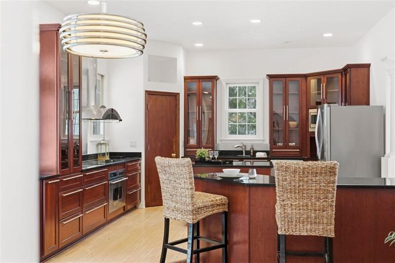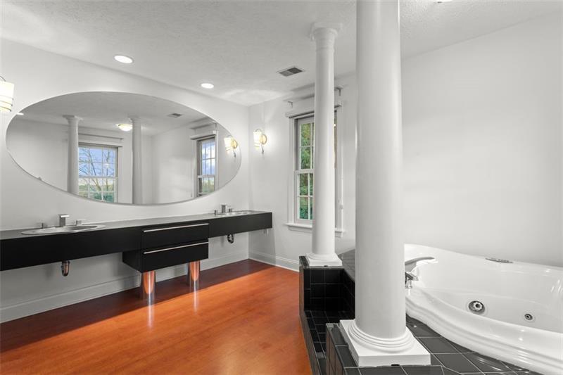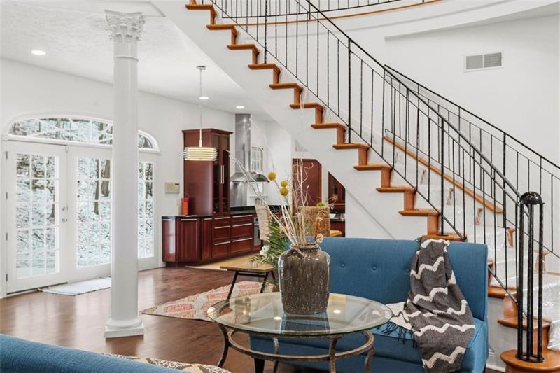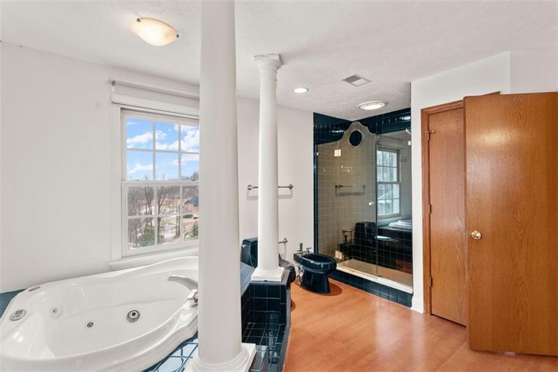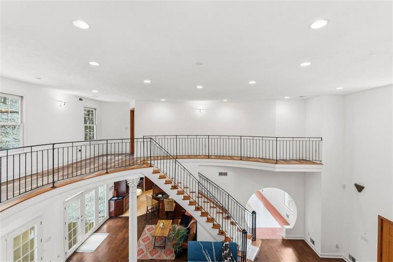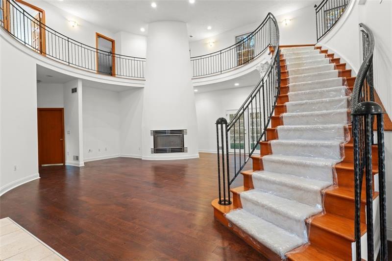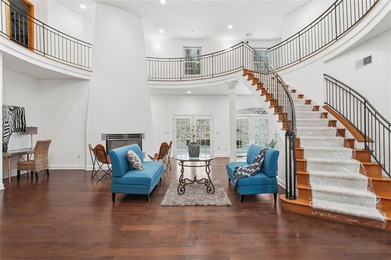 Welcome to this stunning designer inspired custom-built estate, nestled on a private almost 2 acre wooded lot and offering an incredible blend of elegance, luxury, and comfort. Step inside the grand two-story foyer, where a sweeping curved staircase and floor to ceiling fireplace showcase the home's craftsmanship. The open floor plan flows seamlessly through spacious living and entertaining areas, highlighted by gleaming hardwood floors, soaring ceilings, and abundant natural light. The gourmet kitchen features rich wood cabinetry, granite countertops, and a large island with seating. Adjacent formal dining and living spaces provide the perfect setting for gatherings and celebrations. Upstairs, the luxurious primary suite boasts a spa-inspired bath with soaking tub, dual vanities, and walk-in shower. The lower level includes multiple finished rooms, suitable for entertaining or guests. Outside, patios and balconies invite you to relax and take in the peaceful surroundings.
