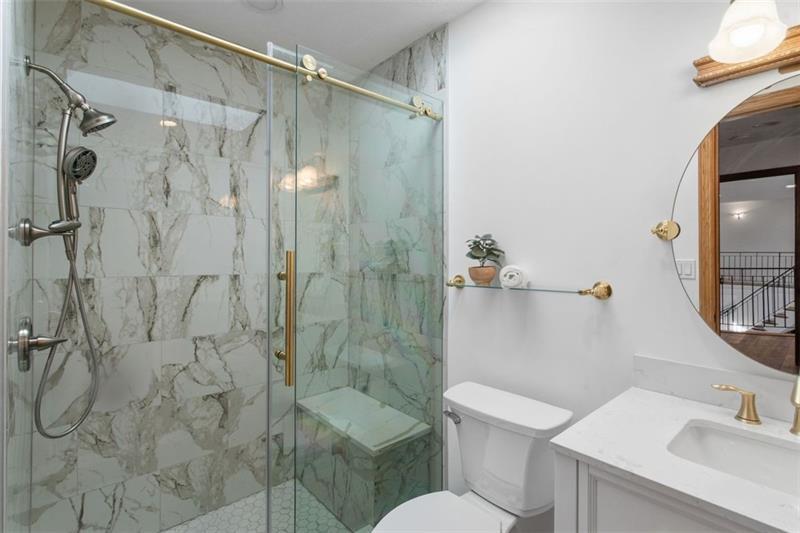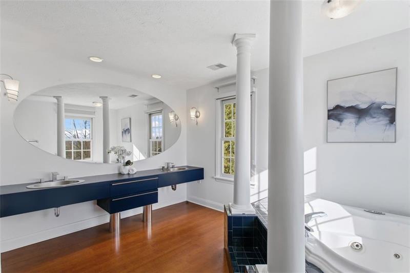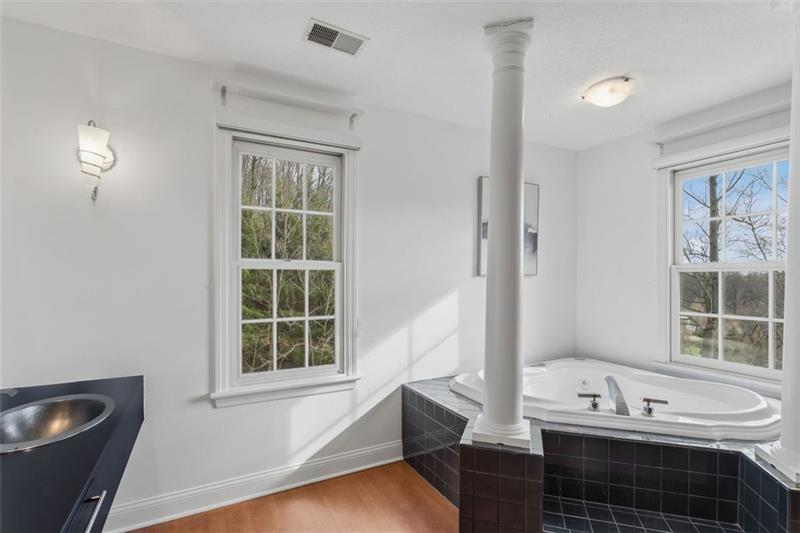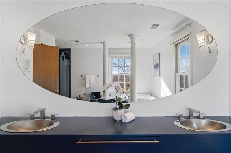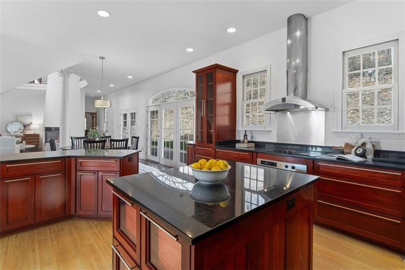 This architectural jewel in the prestigious Les Chateaux community is a rare offering"”custom built by its sole owner with an unwavering commitment to luxury, family living, and enduring quality. Inspired by a residence once featured in Architectural Digest, the home blends architectural drama with everyday livability in a way that feels both refined and welcoming. A breathtaking double spiral staircase, soaring 16-foot ceilings, and a dramatic floor-to-ceiling fireplace set the tone for the main level, where expansive Andersen designer windows flood the home with natural light. These premium windows elevate the home's aesthetic while enhancing energy efficiency and showcasing serene views of the private, wooded 2-acre lot. The updated kitchen, family room, sitting room, office, and first-floor bedroom all enjoy this abundant natural light. Every bedroom throughout the home features its own en-suite full bath, offering exceptional comfort and privacy for family and guests. The first-floor suite is ideal for multigenerational living, functioning beautifully as an in-law suite with its own full bath and private access. The lower level expands the home's livability even further. With high ceilings, large windows, a full bath, and multiple flexible rooms, it can easily serve as a second in-law suite, a private guest retreat, or a full entertainment level. Whether envisioned as a movie room, gym, playroom, or additional bedroom, the space adapts effortlessly to the needs of a modern family. Recent updates"”including a new roof, full interior repaint, new carpeting, and newly remodeled flooring"”ensure the home feels fresh, current, and meticulously maintained. Every detail reflects the original owner's commitment to craftsmanship and class. Outside, the home's serenity is unmatched. Glass doors open to balconies and a large covered porch overlooking the private, wooded backyard, creating a peaceful oasis along a quiet, private road. Despite its tranquility, the property remains close to shops, restaurants, major roadways, and the new Franklin Regional Elementary School. This is a residence where luxury and livability coexist effortlessly"”a spacious family home with refined finishes, thoughtful design, and the privacy of a secluded estate. A true jewel, built with intention, elegance, and heart.