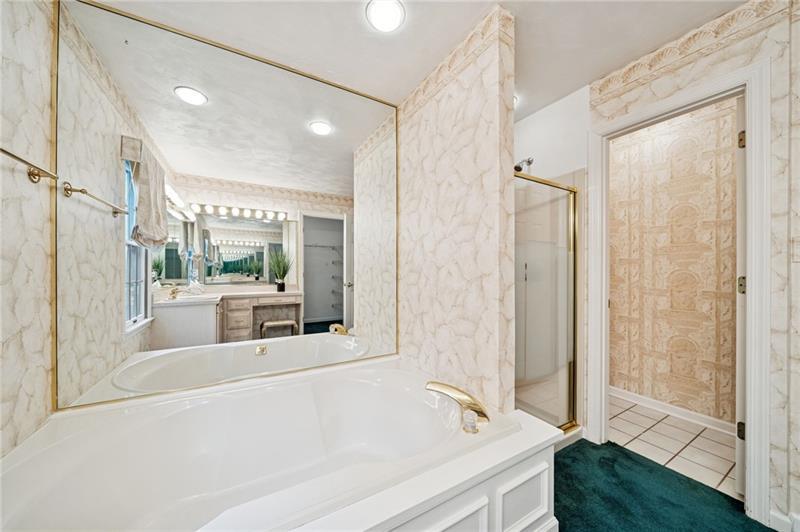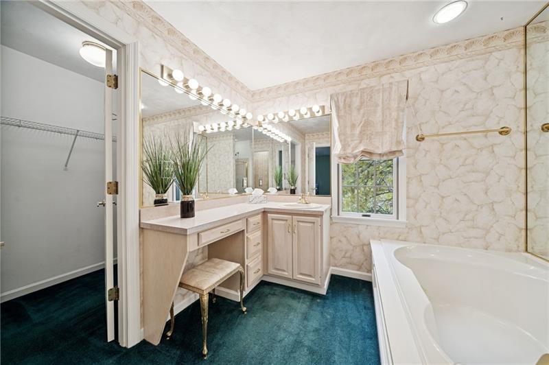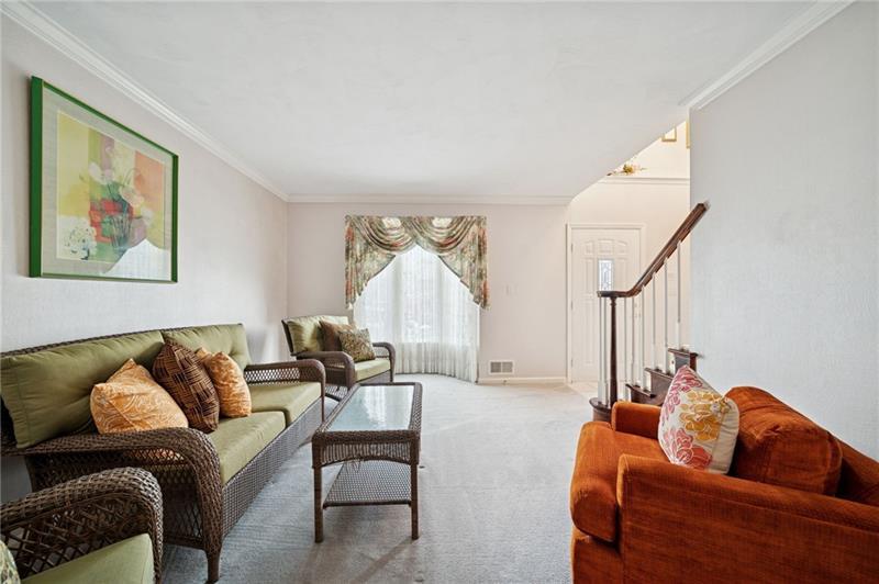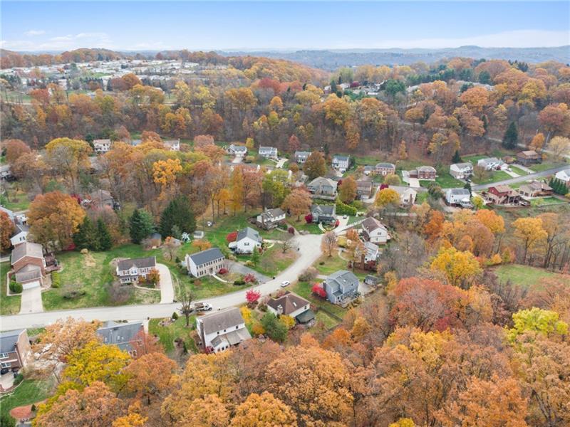 Welcome to this meticulously maintained Murrysville home, ideally situated at the tranquil end of a cul-de-sac. The charming stucco exterior and durable concrete driveway and steps create a welcoming first impression. Step inside to a grand staircase that immediately captures attention. The heart of the home boasts an open-concept kitchen flowing seamlessly into an eat-in area and a cozy, step-down den. Enjoy outdoor living on the covered porch. Upstairs, you'll find generously sized bedrooms, including an updated bathroom with a skylight. The luxurious master suite features a large walk-in closet and a relaxing soaker tub. An unfinished basement offers a blank canvas, ready for your personal touch. This home also includes a convenient two-car garage and is ideally located close to local shops and restaurants, combining suburban serenity with urban accessibility.