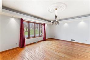 SPRAWLING 5-bedroom 4.5 bath home with a unique floor plan on a private 1.5 acre lot. The first floor features a fully equipped gourmet eat-in kitchen with granite countertops, a formal dining room, a sunken den, sunroom, laundry room, powder room, and an entry-level over sized three-car garage. Family room with a 2-way floor-to-ceiling stone fireplace with sliding glass doors to the oversized rear deck overlooking the park-like setting of the rear yard. The upper level has a sitting area, four bedrooms, two with a Jack & Jill bath. The master bedroom has an en-suite bath, large closets, and a walk-out to a private deck. The lower level features a game room, billiard room, bedroom, full bath, two large storage rooms, a garden room and a walkout to the patio. Conveniently located to the Turnpike, Parkway, Parks, Restaurants & Shopping.