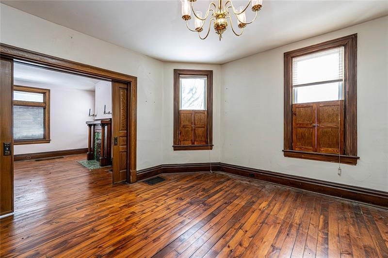 SPACIOUS 3 BEDROOM, 1.5 BATH, 2 STORY. ELEGANT 15X10 ENTRY. ORIGINAL HARDWOOD FLOORS & HARDWOOD TRIM THROUGHOUT. LIVING ROOM - 15X15 - W/ POCKET DOORS TO FOYER & DINING ROOM. LIVING ROOM FEATURES CRAFTMAN STYLE FIREPLACE W/ MOTTLED TILE TRIM. DINING ROOM - 16X15 - W/ ACCESS TO KITCHEN. KITCHEN - 15X13 - W/EAT-IN AREA. BACK STAIRWAY TO 2ND FLOOR & ACCESS TO BACK PORCH & YARD. POWDER ROOM IN FOYER. PRIMARY BEDROOM - 16X14 - W/ FIREPLACE. BEDROOM #2 - 16X15. BEDROOM #3 - 13X12. FULL BATH W/TUB-SHOWER. WALK UP ATTIC. GAMEROOM - 14X11 - LOWER LEVEL W/ WALK OUT ACCESS TO SMALL PATIO UNDER REAR PORCH. 2 CAR DETACHED GARAGE W/ 1 GARAGE DOOR OPENER.