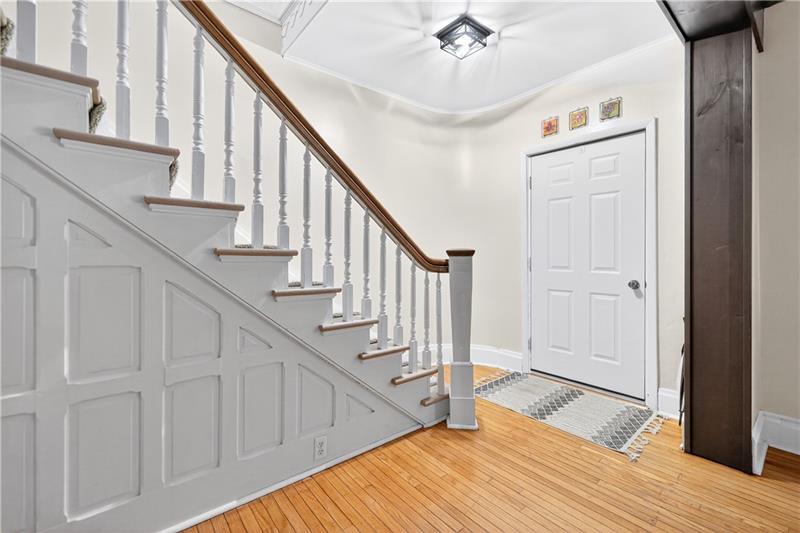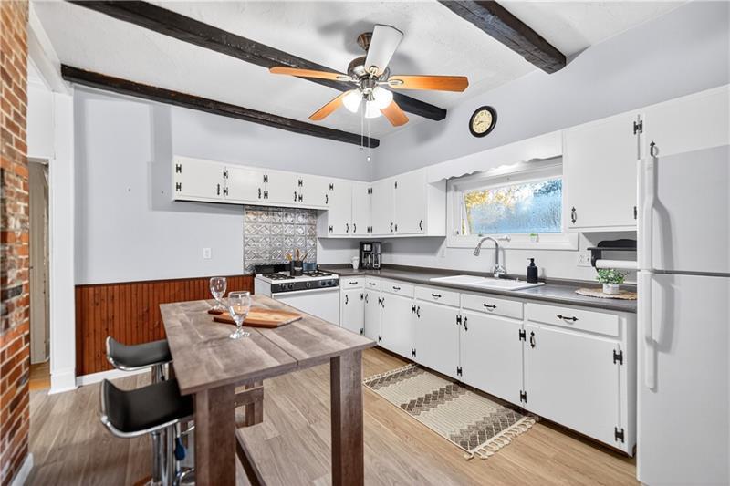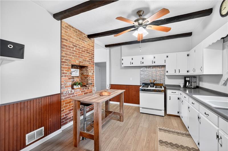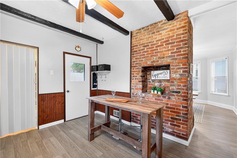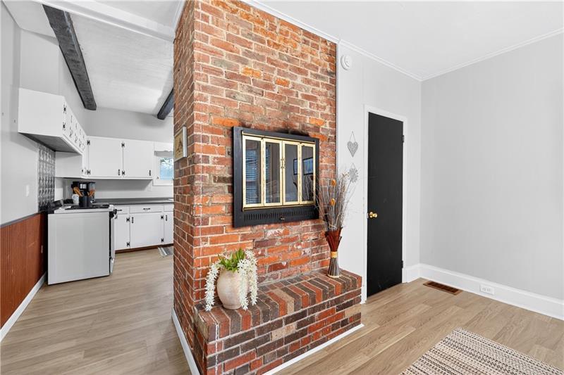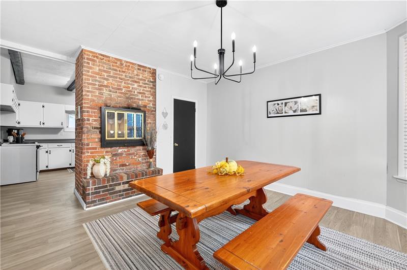 This inviting home offers classic character with modern comfort, featuring a beautiful wrap-around deck perfect for relaxing or entertaining. Step inside to the welcoming living room complete with a wood-burning fireplace and original hardwood floors. The kitchen and dining area share a timeless brick fireplace, creating a cozy gathering space. The spacious dining room is filled with natural light and includes a convenient storage closet. The kitchen provides easy access to the rear yard and includes a laundry area for added convenience. Generously sized bedrooms and a remodeled full bath with ceramic tile tub and shower. The basement offers an abundance of storage and a walk-out for added functionality. Located close to shopping, dining, and everything Greensburg has to offer "” this home is a must-see!