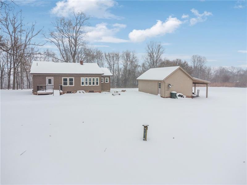 Situated on approximately 100 acres in Washington Township, this unique property offers a rare combination of land, functional outbuildings, and a comfortable residence in a private setting. The 2-bedroom, 1-bath home features an updated kitchen and living area along with a bonus room that may be used as a den, home office, or potential third bedroom. The residence provides a practical layout that serves as a solid base for the larger property. A standout feature is the large detached three-bay garage/outbuilding, complete with a concrete floor and spacious loft, offering exceptional utility for equipment, vehicles, storage, or workshop use. An additional detached garage further enhances the functionality of the property. With extensive acreage, multiple structures, and established access, this property presents a wide range of possibilities for those seeking space, privacy, and versatility. Properties offering this scale and infrastructure are increasingly difficult to find. Refrigerator, dishwasher, gas range, garage door openers are included Approximately 100 acres comprised of three separate parcels: 63-13-00-0-030, 63-13-00-0-031, and 63-13-00-0-013. Parcels are being sold together as one offering. Buyer to verify parcel details through due diligence.