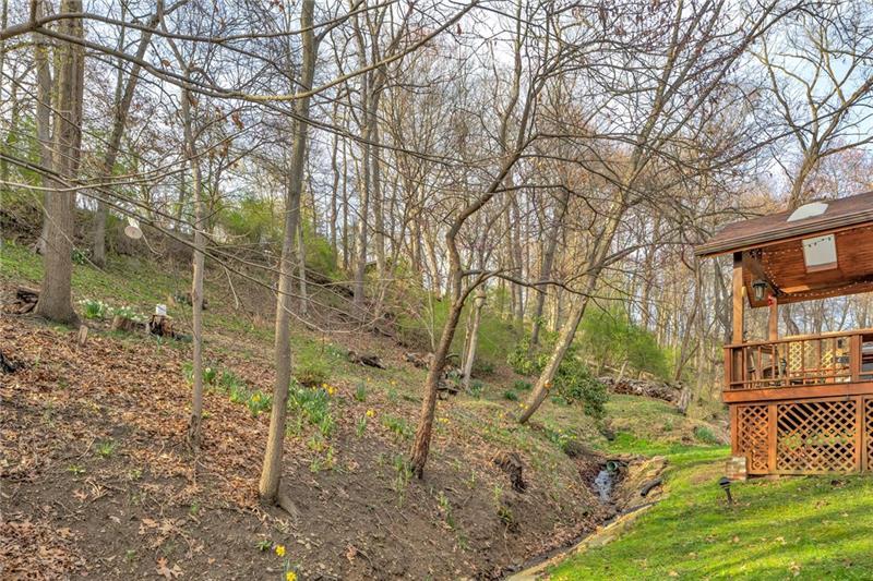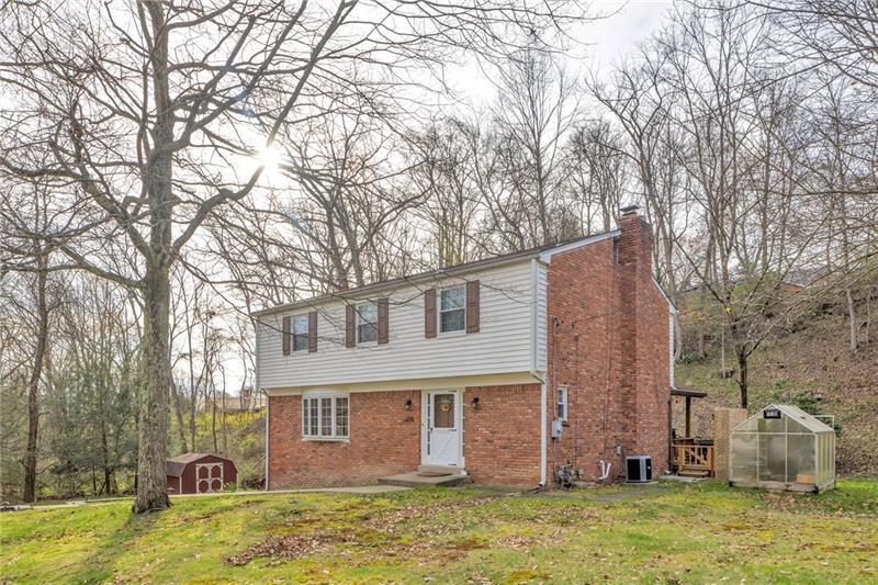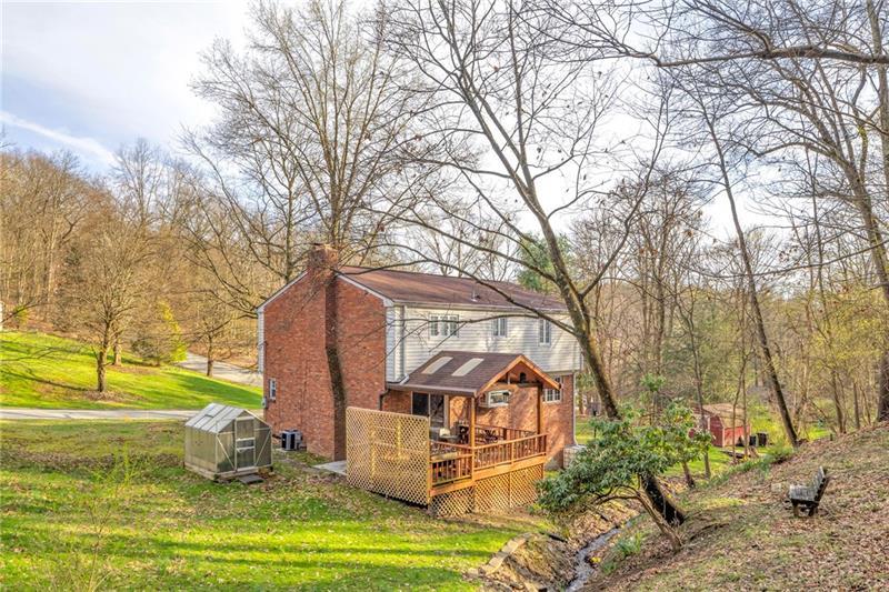 Peaceful retreat in the heart of Murrysville! Tucked away in a quiet no-outlet neighborhood, this charming home sits on nearly an acre and offers the perfect blend of comfort, nature, and convenience. Step outside and discover your own backyard oasis "” complete with a covered deck overlooking a serene wooded view, a greenhouse, raised potting table, storage shed, and a rainwater collection tank, perfect for watering your garden or potted plants. A small natural spring gently runs behind the property, creating a tranquil setting where kids can explore and wildlife such as deer, squirrels, turkeys, and birds often gather. Inside, you'll find spacious living areas ideal for gatherings or quiet nights. The location is unbeatable "” within walking distance to the intermediate school yet still serviced by school transportation, and just minutes from several parks, shops, hiking trails, library, and restaurants.