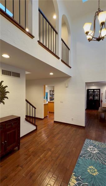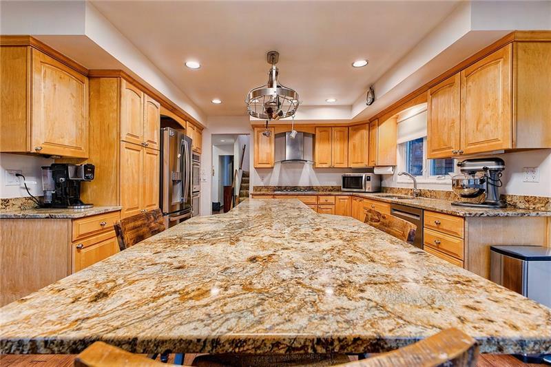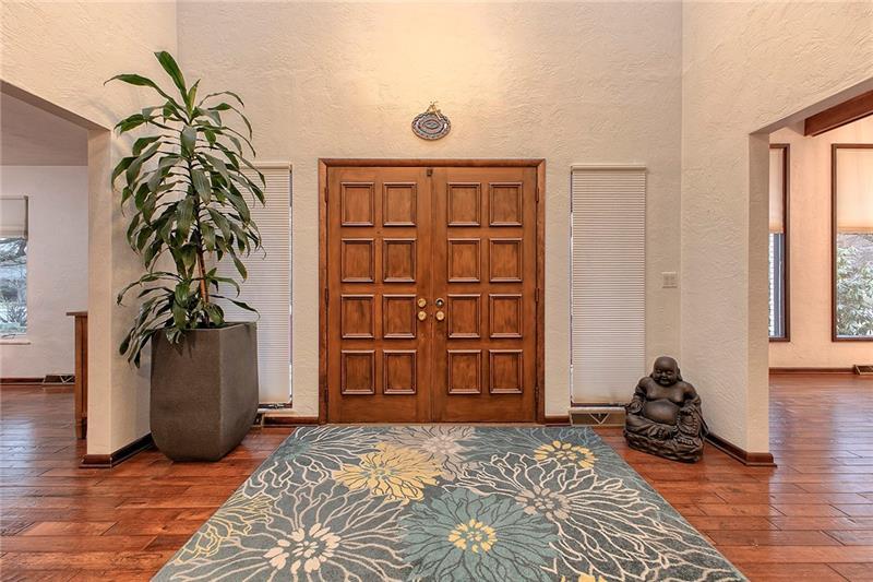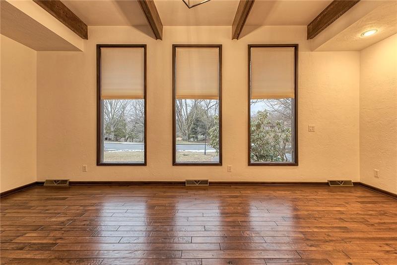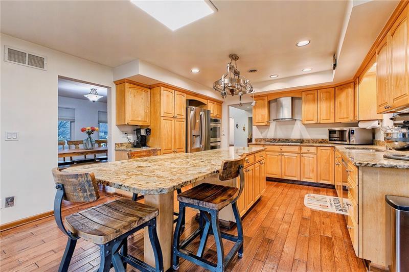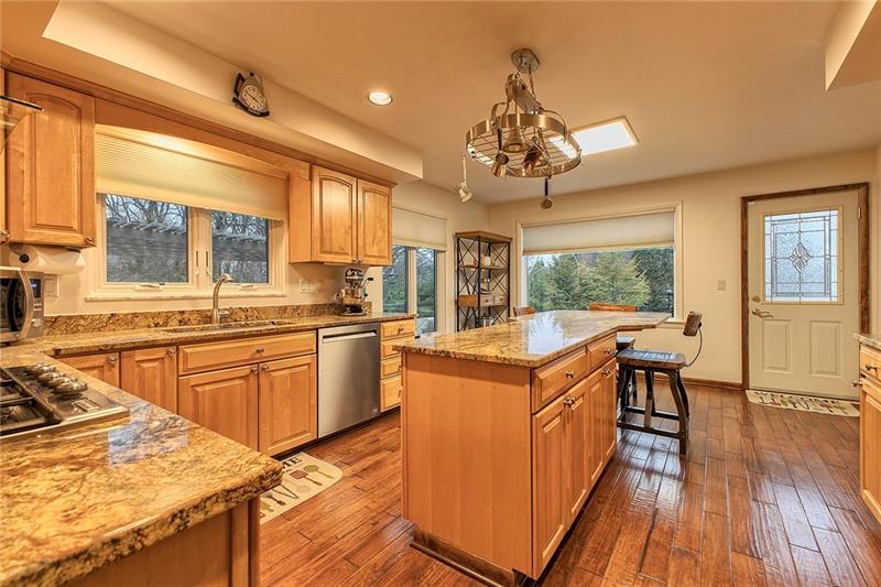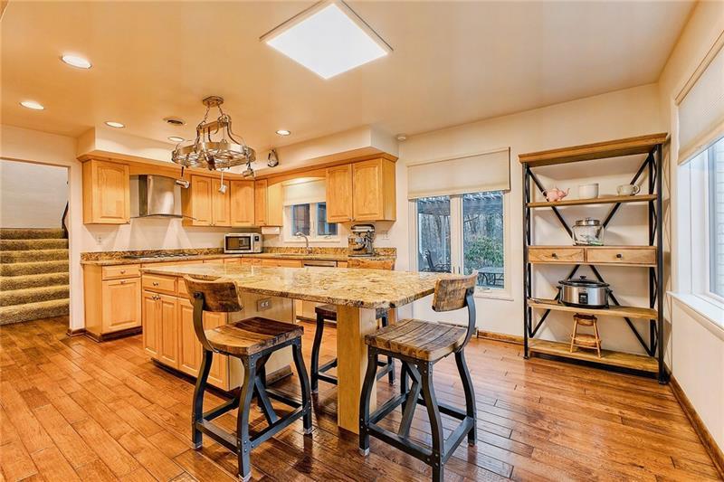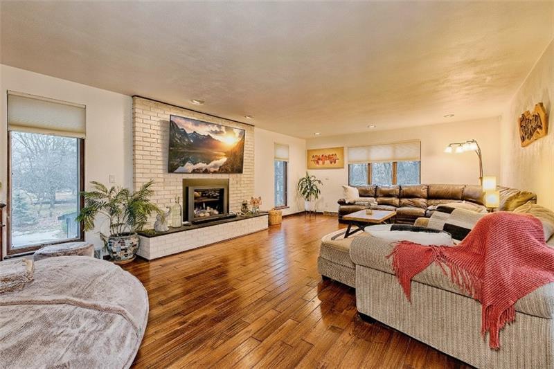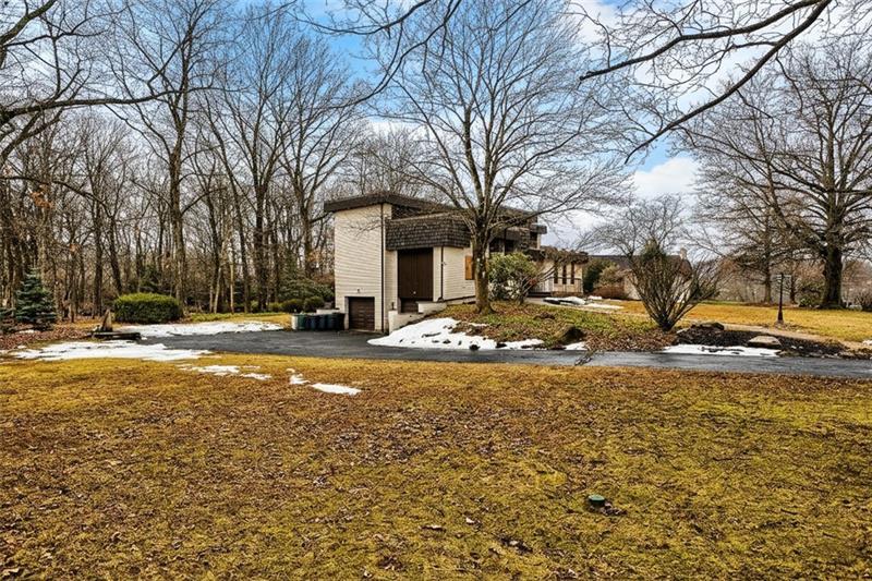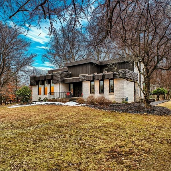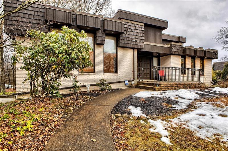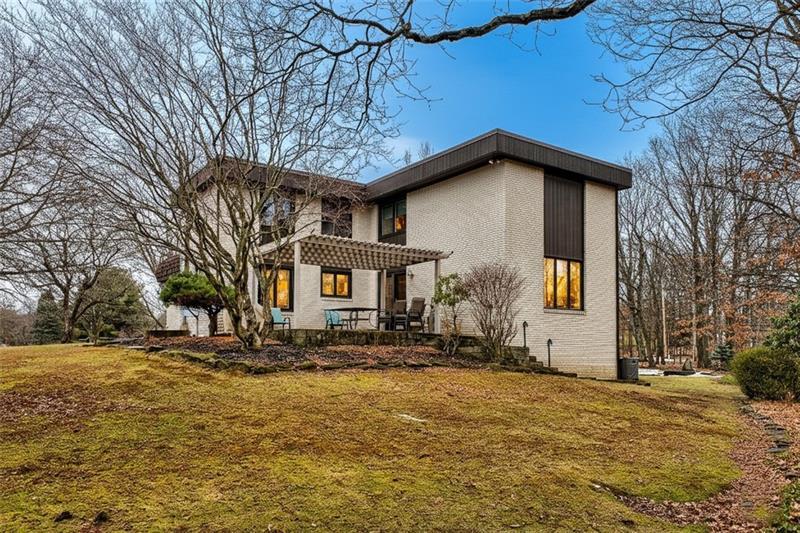 Architect-designed & fully renovated 4 BR, 3.5 bath contemporary tucked on nearly ½ acre private wooded lot in the Murrysville area. From the moment you step into the dramatic 2-story entry w/ skylights & soaring ceilings, natural light pours in & the warmth of rich Hickory hardwood flooring sets the tone. Imagine quiet mornings in the beautifully updated kitchen featuring granite countertops, stainless steel appliances, convection oven, gas cooktop w/ hood & large island, the perfect gathering space. Oversized windows frame the wooded setting & fill the home w/ light throughout the day. The main level offers a flexible den or 4th BR, formal DR for hosting holidays, elegant living rm/parlor & inviting family rm w/ gas fireplace. French doors open to patio & pergola, creating seamless indoor/outdoor living, ideal for summer evenings, entertaining friends or simply enjoying your private backyard. Upstairs, retreat to the expansive master suite complete w/ private bath, glass door walk-in shower, double closets & cozy second gas fireplace, the perfect place to unwind at the end of the day. Two additional BRs & full bath complete the upper level. Finished lower level features 3 versatile rms ready to become your home office, fitness space, media rm or guest retreat, plus separate laundry & ample storage.2-car garage. Light-filled contemporary design w/ architectural character throughout. 14-month home warranty included for added peace of mind.