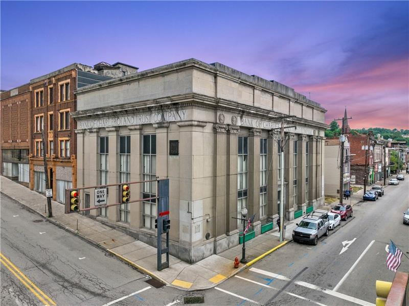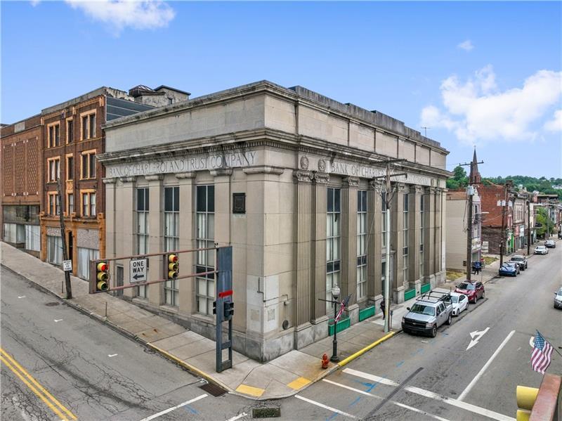 The iconic Bank of Charleroi and Trust building is now available and ready for its next chapter. This is a rare opportunity to make your mark in the Mon Valley real estate market with a truly one-of-a-kind property. Continue its legacy as a financial institution, or reimagine it as a destination restaurant, boutique hotel, apartment complex, brewery, or another standout commercial use... the possibilities are virtually limitless. Offering nearly 16,000 square feet across multiple levels, the building features soaring ceiling heights and timeless stone and marble architectural details throughout. Original bank vaults remain intact, adding character and authenticity that simply cannot be replicated (maybe the perfect spot for a cool Escape Room business). The impressive main level spans over 5,000 square feet with approximately 30-foot ceilings and includes dedicated teller stations, multiple vaults, offices, and restrooms. The second floor offers a conference room with kitchenette, loft-style space, and additional bathrooms. The lower level provides substantial additional square footage, break rooms, restrooms, and an exceptionally large vault. All three main floors are accessible by both stairs and elevator. There are two additional levels accessed via ladder above what you can see! Ideally located with high traffic exposure and just minutes from I-70, this landmark property combines history, scale, and flexibility... ready to be transformed into something extraordinary!!