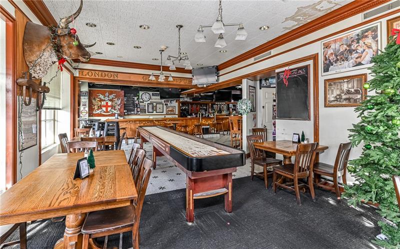 Established, Well-Maintained Bar & Restaurant in PRIME Location! Building, Land, Business, Equipment and Liquor License All Included! All Mechanicals Maintained & Updated. All Equipment in Good Condition for Turn Key Sale. Owners Have Had a Great Time Operating the Establishment. Lots of Charm and Character to be Enjoyed by Next Owner. 2 Apartments on 2nd and 3rd Floor for Additional Income