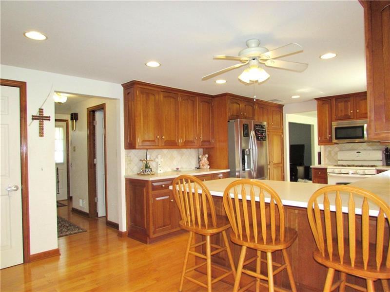 Beautiful & Unique, True 5 Bedroom, 4.5 Bath Home on nearly a Half Acre lot in the desired Mandordale Neighborhood of Murrysville. One Amazing Feature of this home is the Incredible Two-Story Addition which created a Bright & Open Main Level GREAT ROOM. This Indoor Retreat is defined by its Walls of Windows, Dramatic Vaulted Ceiling, its own Heating & Air Conditioning, and a Built-in Cabinet. The flexible space can fill many uses such as a Home Office, Studio, Playroom or a Perfect Entertaining Space. The room opens to the Kitchen that boasts Gorgeous Cherry Cabinets, Solid Surface Counters, Ceramic Backsplash, a Breakfast Bar, Pull Out Pantry, & Oak Flooring. The Main Floor also includes a Living Room, Formal Dining Room, and a Family Room with a Stone Gas Fireplace. Charming Pocket Doors on both sides of the Family Room could be Closed-Off for Privacy. The Laundry Room has an abundance of Extra Cabinets for Storage, and Includes the Washer & Dryer. Completing this level is a Full Bath with a Walk-in Shower, AND a Half Bath too! Upstairs you'll find 5 Generously Sized Bedrooms and Two more Full Baths. The Primary Suite offers 4 Closets for Tons of Storage, a Dressing / Vanity Area with a Sink, and the Primary Bath. The Closet Space in the remaining 4 Bedrooms & the Hallway is sure to Impress! The Bedrooms are equipped with Ceiling Fans, and there's a Whole House Fan too, all acting to increase your comfort. One of the Bedrooms also features Color Changing LED Lights. Double Sinks & a Spacious Linen Closet are present in the Main Bathroom. The Lower Level Game Room provides Additional Living Space. It has a Wall of Built-In Shelves, a Wood-Burning Fireplace, another Full Bath. As a Bonus, there's the Lower Part of the Back Addition that has more Walls of Windows that provide a Captivating View of the Large, Usable Backyard. The room has Flexible Uses such as an Exercise Room / Gym, a Second Game Room, a 3rd Garage or whatever suits your needs. Other Highlights include a New Furnace and Air Conditioning, New Tankless Water Heater, a Shed with Electric Power, and an Electric Vehicle Charger. Don't miss the Fabulous Home!